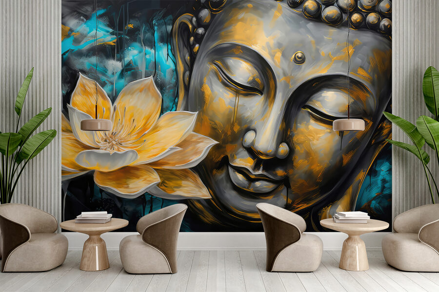 Képzelje el, hogy a szobájába lépve minden egyes nap ez a fenséges freskó fogadja. A “Sárga virág falfestménye” nem csak a városi tájakra készült darab, hanem arra, hogy egy átlagos falat inspiráló vászonná alakítson. Az élénk sárga szirmok mintha ragyognának a hipnotikus háttér előtt, színpompát és egy csipetnyi nyugalmat kínálva. Van valami varázslatos abban, ahogy a virág és a derűs arc összefolyik – szinte mintha arra hívnának, hogy vegyél egy mély lélegzetet és lazíts.