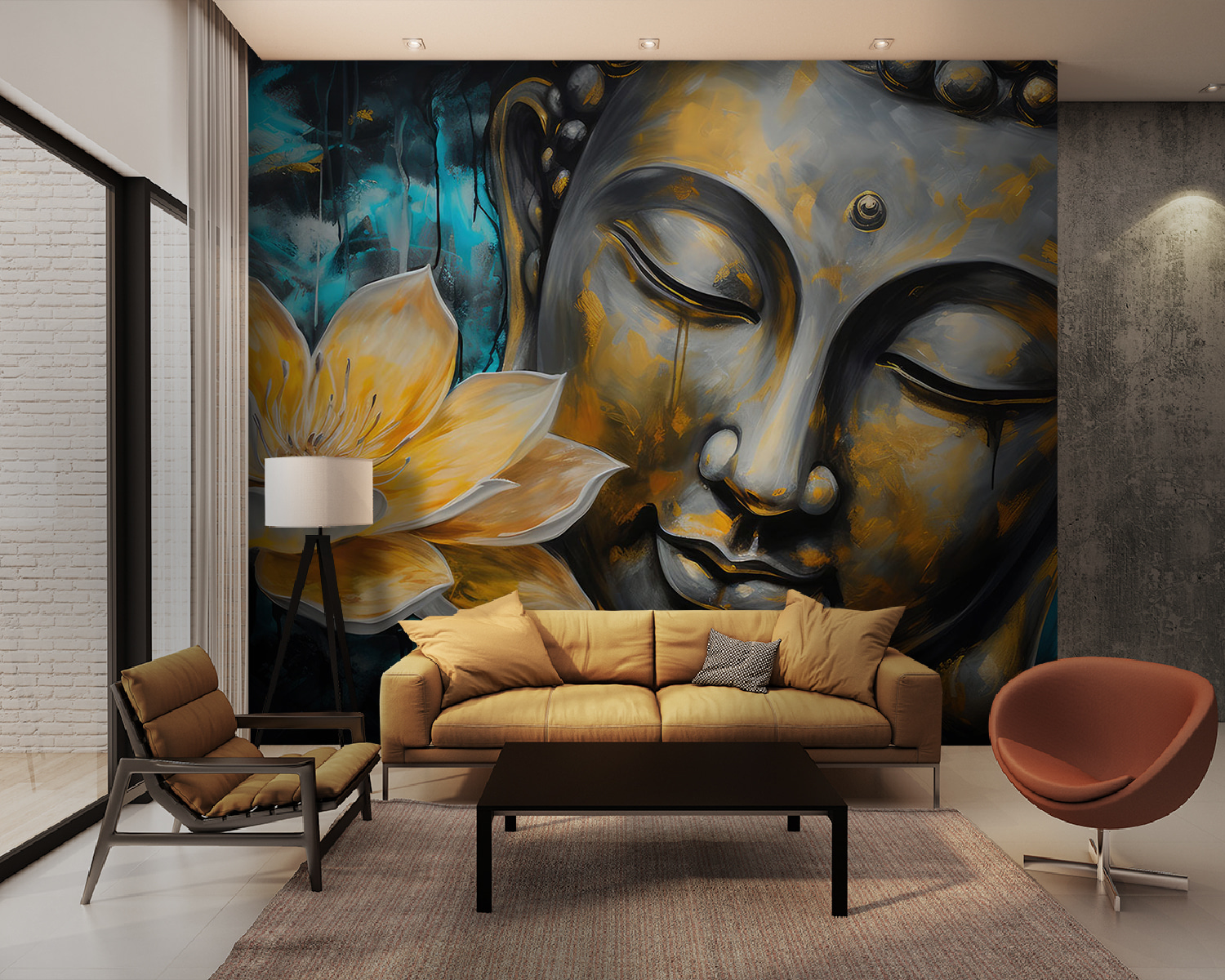 Képzelje el, hogy a szobájába lépve minden egyes nap ez a fenséges freskó fogadja. A “Sárga virág falfestménye” nem csak a városi tájakra készült darab, hanem arra, hogy egy átlagos falat inspiráló vászonná alakítson. Az élénk sárga szirmok mintha ragyognának a hipnotikus háttér előtt, színpompát és egy csipetnyi nyugalmat kínálva. Van valami varázslatos abban, ahogy a virág és a derűs arc összefolyik – szinte mintha arra hívnának, hogy vegyél egy mély lélegzetet és lazíts.
