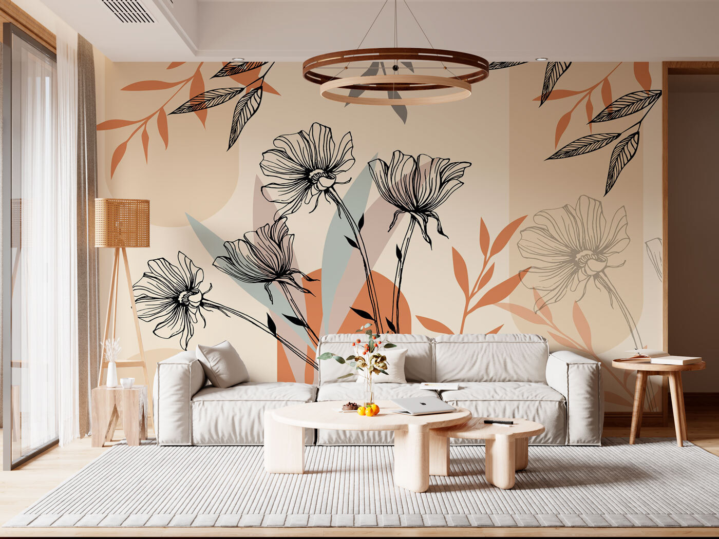 Képzelje el, hogy belép egy szobába, és ez a lenyűgöző falfestmény fogadja: “Egy virág fekete-fehér rajza”. Tökéletes azoknak, akik imádják a dizájner tapétákat és a népszerű falfestményeket. Olyan könnyedén elegáns hangulata van. Finom fekete-fehér virágok táncolnak a lágy árnyalatokból álló vásznon, eleganciát kölcsönözve anélkül, hogy túlterhelné a teret.
