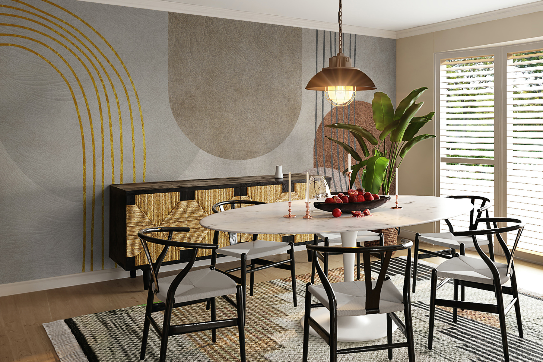 Alakítsa át terét ezzel a lenyűgöző absztrakt geometrikus falfestménnyel, ahol a földszínek úgy táncolnak együtt, mint régi barátok a találkozón. Képzelje el, hogy egy olyan szobába lép, amely melegséget és kreativitást sugároz, és megállásra és elmélkedésre hív. A lágy ívek és vonalak nyugtató ritmust teremtenek – tökéletes hangulatos éjszakákhoz vagy inspiráló reggelekhez. Ez a falfestmény művészi eleganciát kölcsönöz, harmonizál a bútorokkal és a dekorációval, miközben épp a megfelelő mennyiségű kíváncsiságot kelti. Ez nem csak egy fal; ez egy élmény. Ki ne szeretne ezzel együtt lógni?
