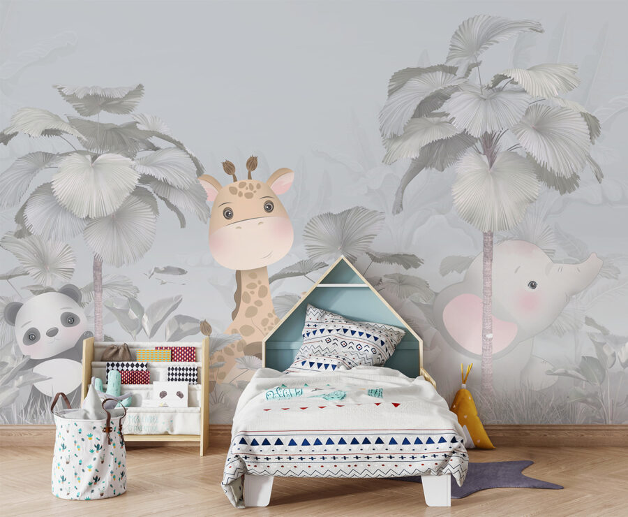 Képzelje el, hogy kisgyermeke szobájába lépve egy bájos zsiráf és egy imádnivaló elefánt fogadja egy szeszélyes, ködös erdőben. Ez a “Falfestmény zsiráf és elefánt az erdőben” falfestmény olyan, mintha egy mesekönyv elevenedne meg. Ez nem csak egy szép kép – az egész szobát álomszép, varázslatos hellyé varázsolja. Van itt valami szinte meseszerű, lágy pasztellszínekkel és azokkal az édes, nagy szemű állatokkal, amelyek kikukucskálnak az óriási levelek mögül. Tökéletes arra, hogy megmozgassa a gyermeked fantáziáját, és egy kis természeti csodát varázsoljon belőle. Akár fiának, akár lányának szánja, bárki úgy érezheti, mintha egy hangulatos, varázslatos dzsungelbe lépne be minden alkalommal, amikor belép. Képzeld el, hogy esténként betakargatod őket, miközben ezek a barátságos arcok vigyáznak rájuk. Ráadásul remek beszélgetésindító – még az is előfordulhat, hogy esti meséket találsz ki ezekről az erdei barátokról.