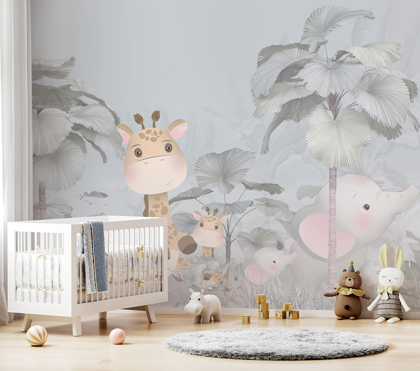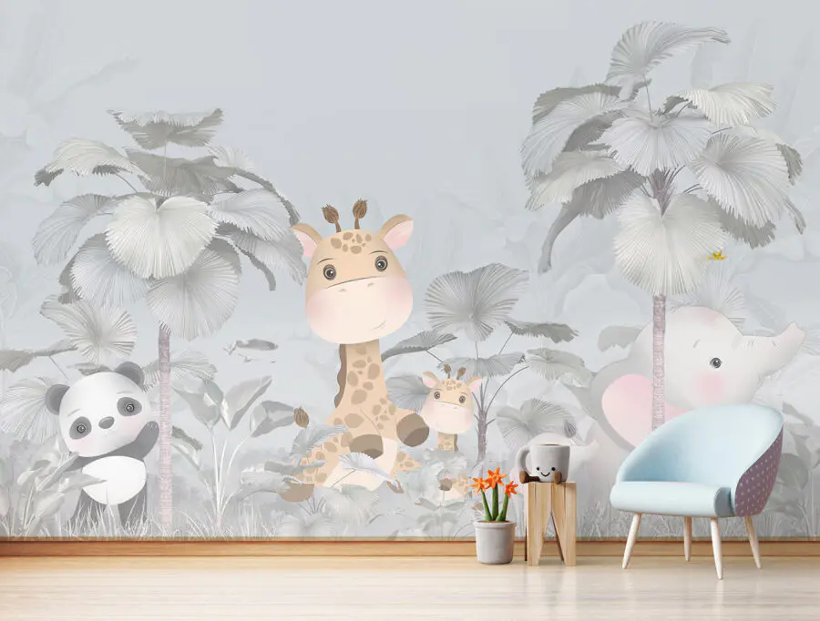 Képzelje el, hogy kisgyermeke szobájába lépve egy bájos zsiráf és egy imádnivaló elefánt fogadja egy szeszélyes, ködös erdőben. Ez a “Falfestmény zsiráf és elefánt az erdőben” falfestmény olyan, mintha egy mesekönyv elevenedne meg. Ez nem csak egy szép kép – az egész szobát álomszép, varázslatos hellyé varázsolja. Van itt valami szinte meseszerű, lágy pasztellszínekkel és azokkal az édes, nagy szemű állatokkal, amelyek kikukucskálnak az óriási levelek mögül. Tökéletes arra, hogy megmozgassa a gyermeked fantáziáját, és egy kis természeti csodát varázsoljon belőle. Akár fiának, akár lányának szánja, bárki úgy érezheti, mintha egy hangulatos, varázslatos dzsungelbe lépne be minden alkalommal, amikor belép. Képzeld el, hogy esténként betakargatod őket, miközben ezek a barátságos arcok vigyáznak rájuk. Ráadásul remek beszélgetésindító – még az is előfordulhat, hogy esti meséket találsz ki ezekről az erdei barátokról.