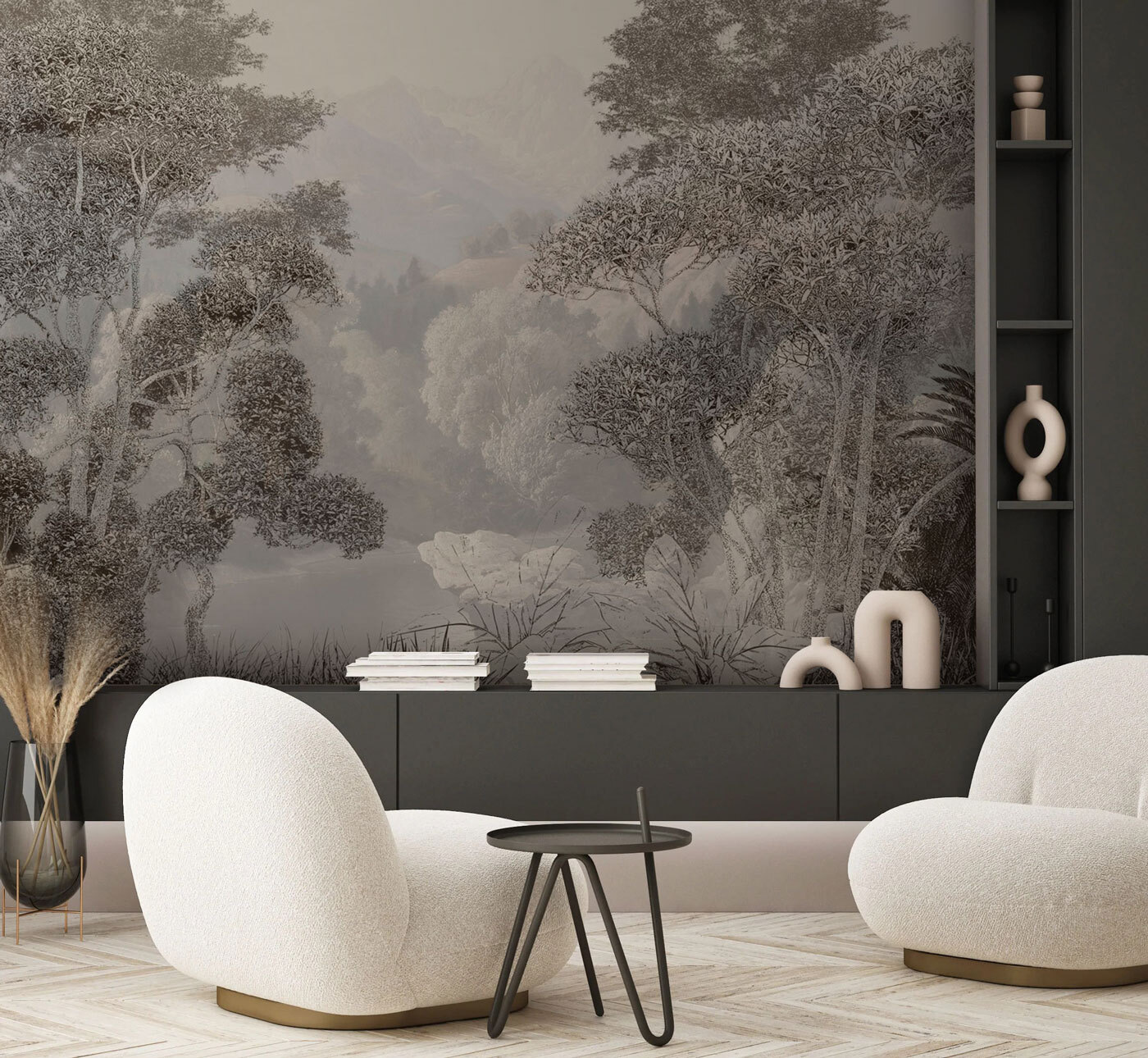 A “Ködös erdő a hegyeken túl” falfestmény segítségével bármelyik szobát nyugodt pihenőhellyé varázsolhatja. Képzelje el, hogy egy nyugodt tájba lép, ahol lágy köd öleli körül a varázslatos fákat és távoli hegycsúcsokat – tökéletes a hangulatos délutánokhoz vagy az inspiráció pillanataihoz. Ez a falfestmény a természetről szóló történeteket suttog, friss levegőt és zizegő leveleket idézve. Akár a nappaliban, akár egy csendes olvasósarokban, vagy akár egy álmos hálószobában, egy kicsit a természetet hozza be a házba. Csukja be a szemét, és szinte hallja a levelek lágy zizegését. Ki ne szeretne elmenekülni a paradicsom e békés darabkájába otthonában? Tökéletesen visszafogott, ez a falfestmény nyugodt hangulatot áraszt, és lehetőséget kínál arra, hogy az élet nyüzsgése közepette fellélegezzen.