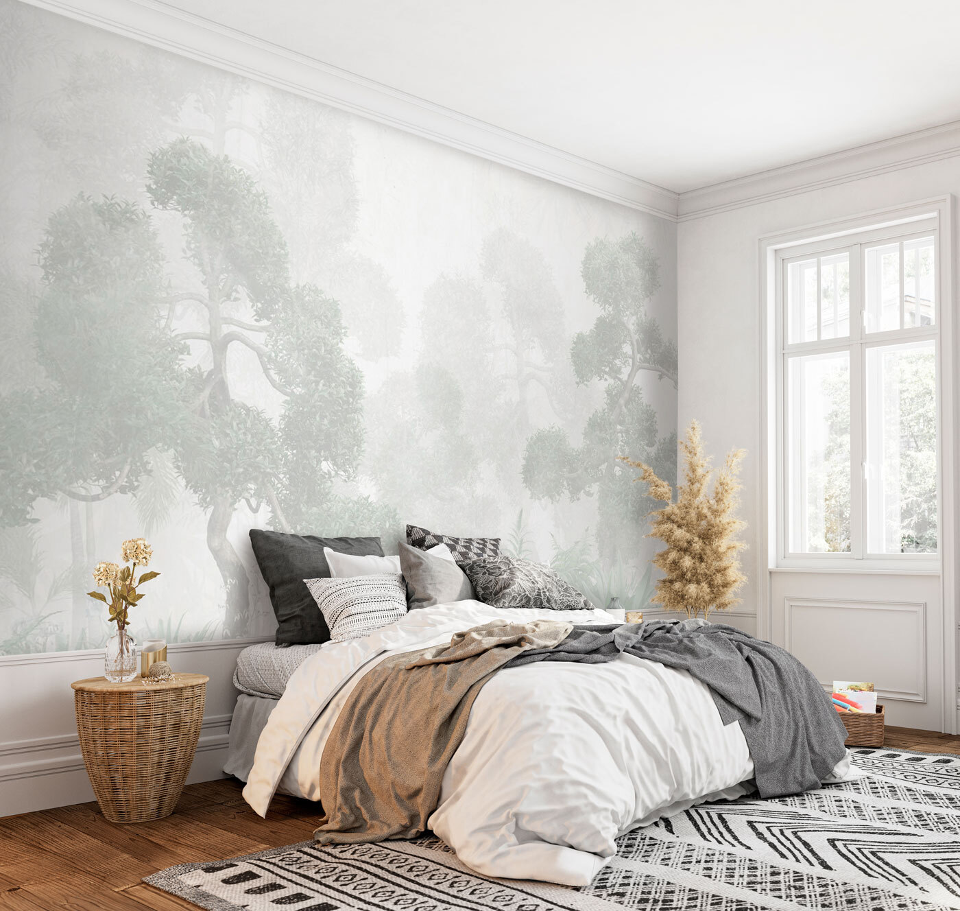 Alakítsa át terét nyugodt üdülőhellyé ezzel a ködös erdőt, növényeket és páfrányokat ábrázoló falfestménnyel. Képzelje el, ahogyan a szelíd ködben sétál, és a természet földes illatai betöltik a levegőt. Tökéletes hátteret biztosít egy kávé melletti hangulatos beszélgetéshez, vagy egy békés búvóhelyet ahhoz, hogy elolvassa azt a könyvet, amelybe már régóta bele akart merülni. Ez a falfestmény ideális minden olyan helyiségbe, amely egy kis nyugalomra vágyik, és olyan nyugodt környezetet teremt, amelyet nem érint az idő. Párosítsd némi lágy világítással és egy kényelmes székkel, és máris megvan a saját titkos menedéked otthonodban.