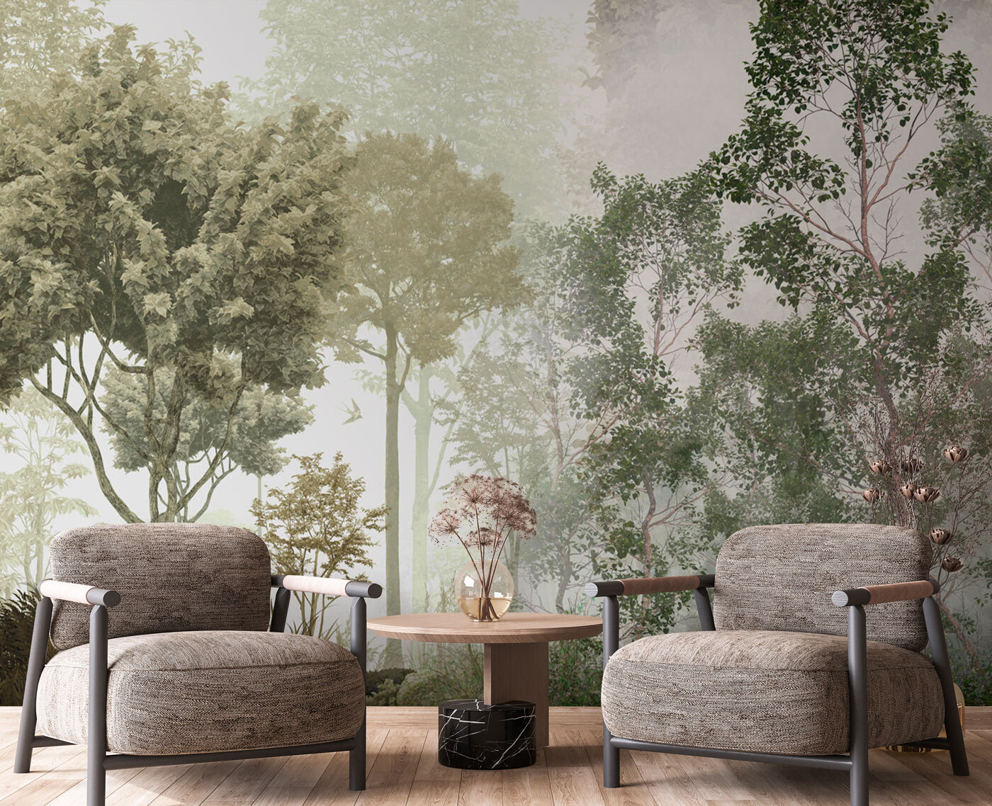 Képzelje el, hogy belép a nappalijába, és úgy érzi, mintha egy nyugodt, ködös erdőbe csöppent volna. Ez a “Ködös erdő buja zölddel” falfestmény pontosan ezt hozza el – a természet nyugalmának egy szeletét egyenesen az otthonába. Szinte hallja a madarak csicsergését a fák tetején és a levelek zizegését a lágy szellőben. Tökéletes azok számára, akik szabadtéri kalandokról álmodoznak, de szeretik a beltéri élet meghittségét. Dús, élénk és éppen kellően titokzatos – gondoljon a ködös reggelekre egy csésze forró kávéval a kezében. Ráadásul remek beszélgetésindító, ha vendégek jönnek át. Alakítson át bármilyen teret, és veszítse el magát ebben a zöld paradicsomban.