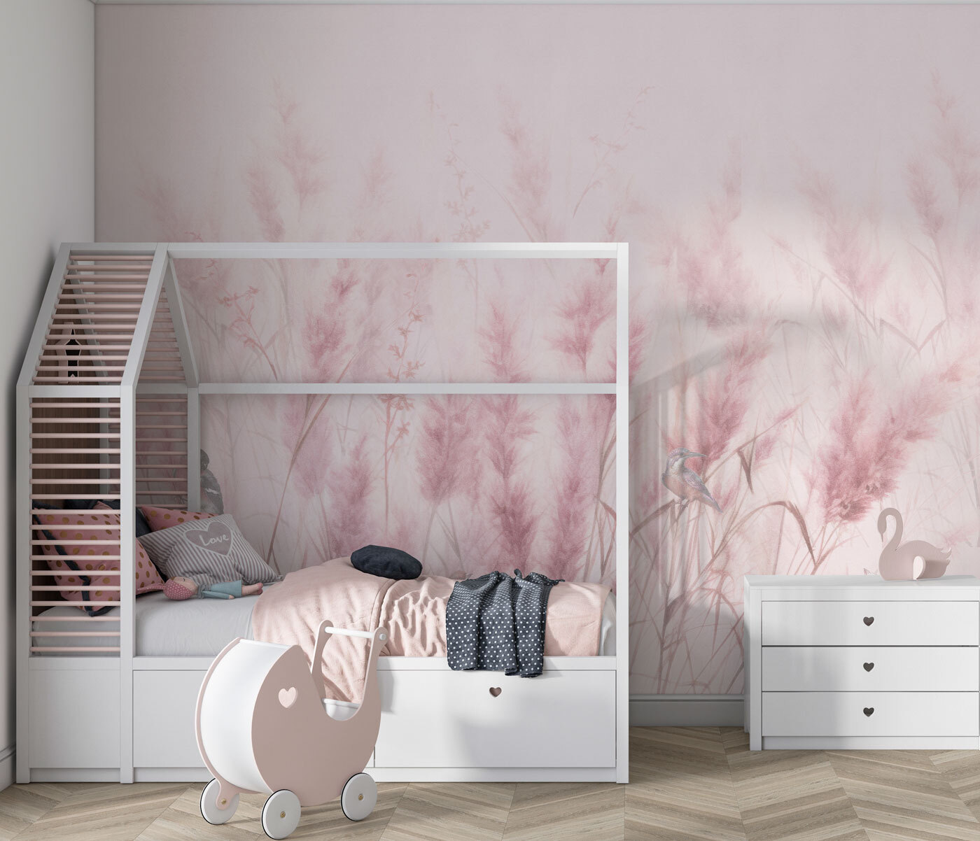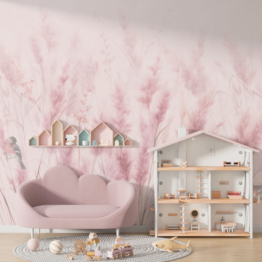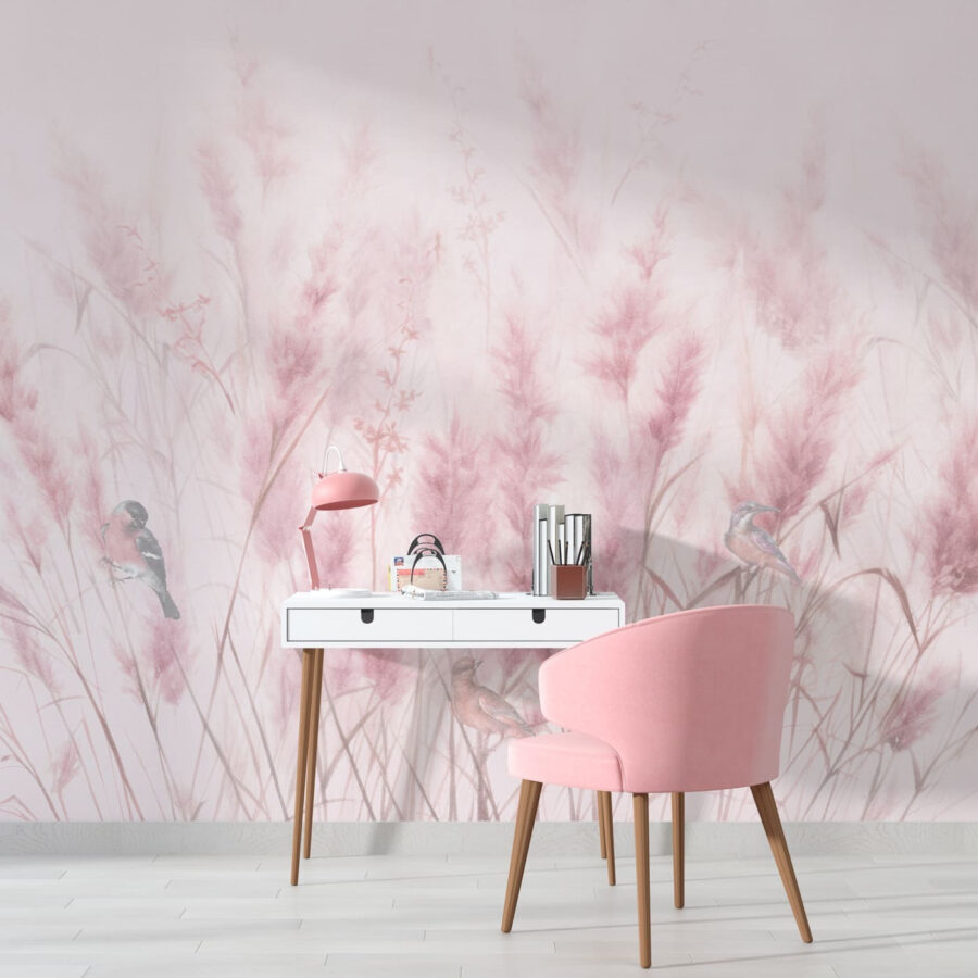 Képzelje el ezt a falán – lágyan ringatózó, puha rózsaszínű fűszálak és bájos kismadarak repkednek körülötte. Mintha egy derűs hajnali rétet hoznál a szobádba! Ez a “Madarak puha rózsaszín fű között” falfestmény tökéletes a gyerekszobába, nyugtató hangulatot adva nekik, és beindítva apró képzeletüket. De őszintén szólva, bárhol csodásan mutatna, ahol egy kis nyugalmat és természetet szeretnél – például az olvasósarokban vagy az irodádban is.