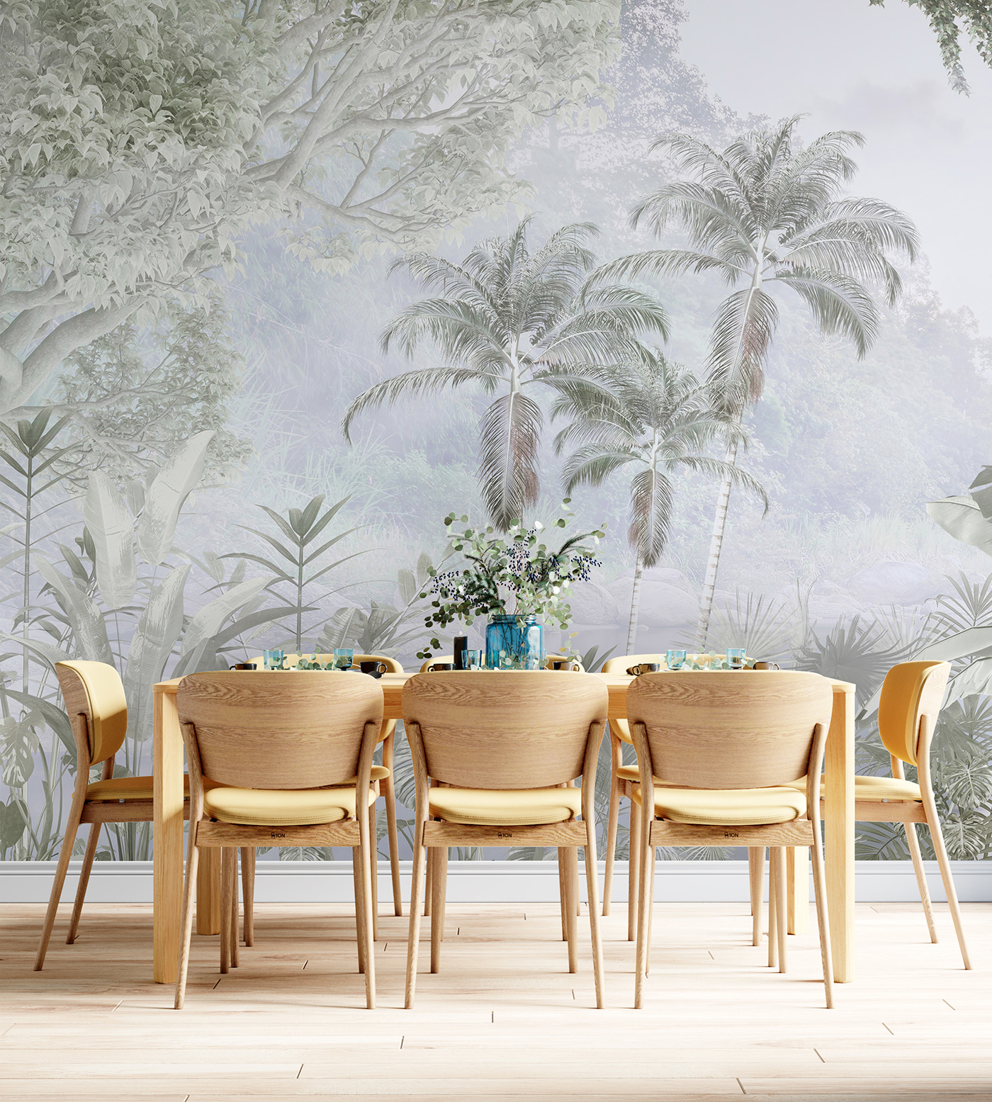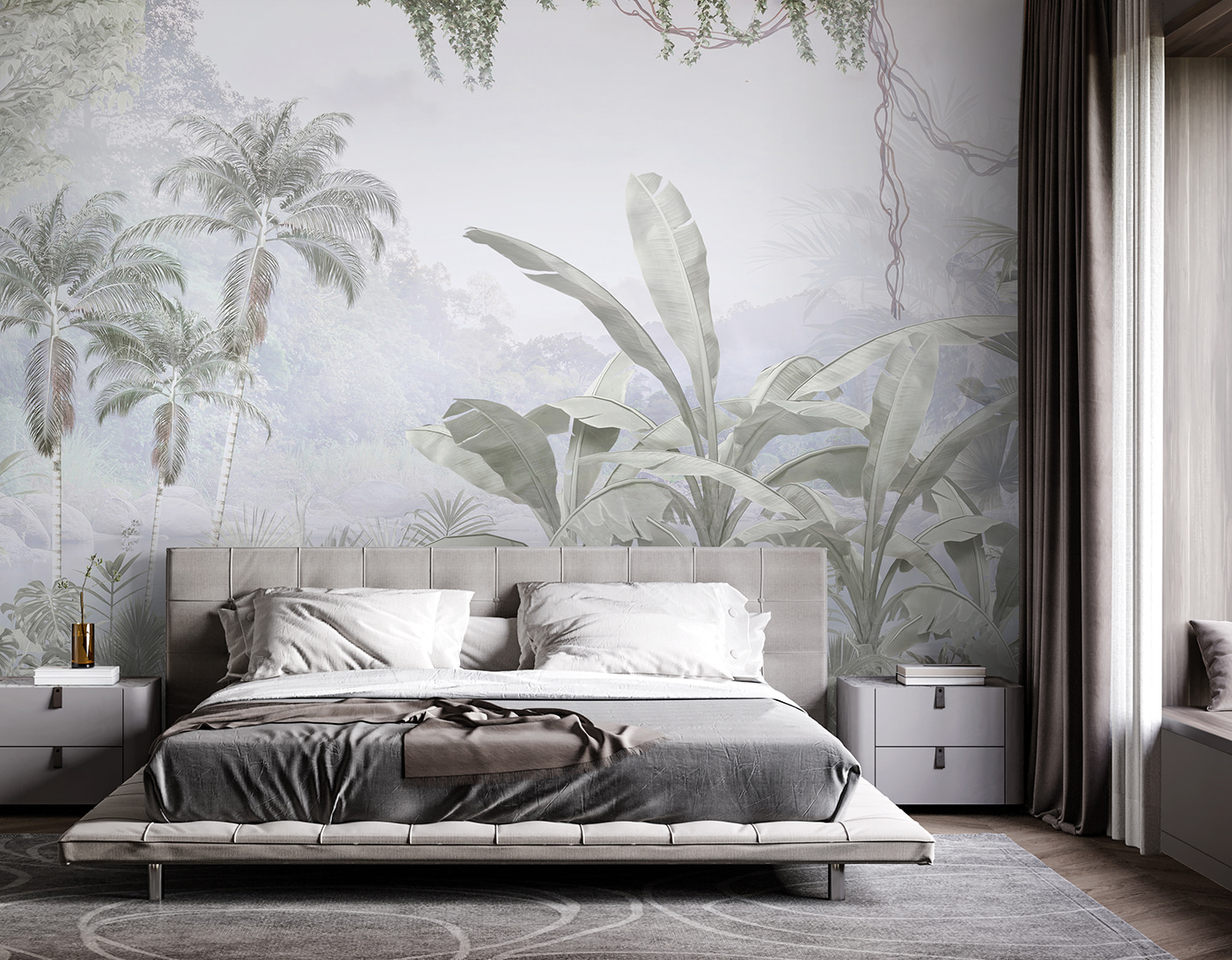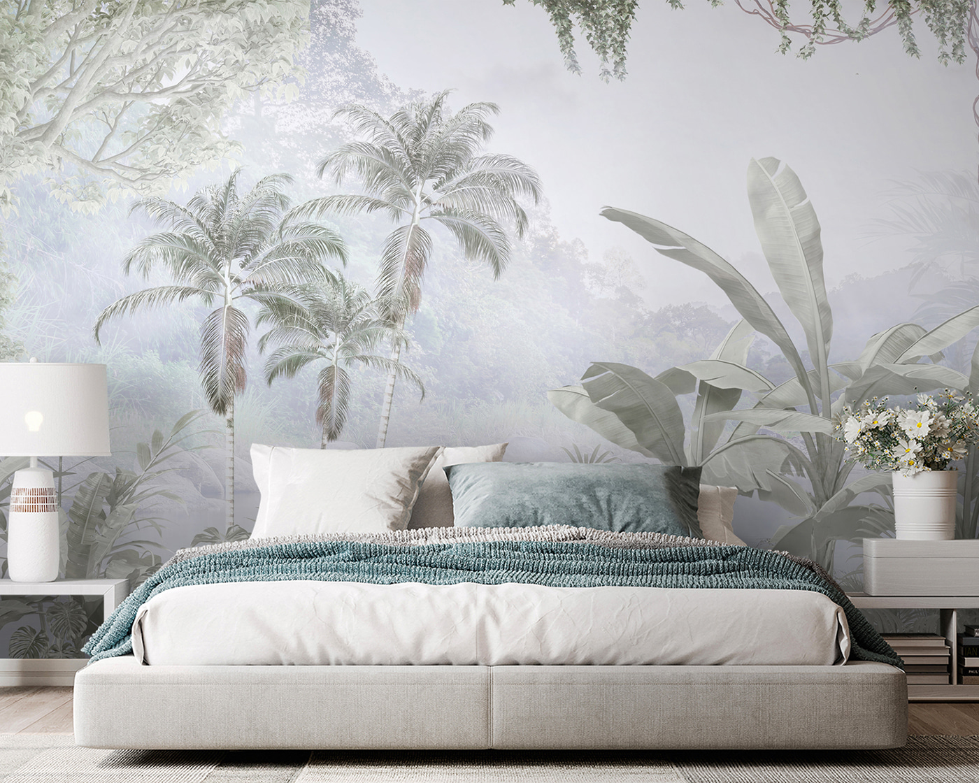 Bármilyen teret alakítson át szellős meneküléssé ezzel a falfestménnyel, amelyen egy buja pálmafacsoport látható. Olyan, mintha a paradicsom egy szeletét hoznád a nappalidba – képzeld el, ahogy kávét szürcsölgetsz, miközben a ringatózó pálmákat bámulod. A lágy színek nyugtató hangulatot kölcsönöznek, amely tökéletes a békés visszavonuláshoz. Talán ez a hangulatos filmestek háttere, vagy tökéletes hely a végtelen Zoom hívásokhoz – ki ne szeretne egy trópusi paradicsomot maga mögött? Ez a falfestmény gyakorlatilag egy olyan nyaralás, amihez nem kell csomagolnod. A falaid megérdemelnek egy kis szórakozást, nem igaz?
