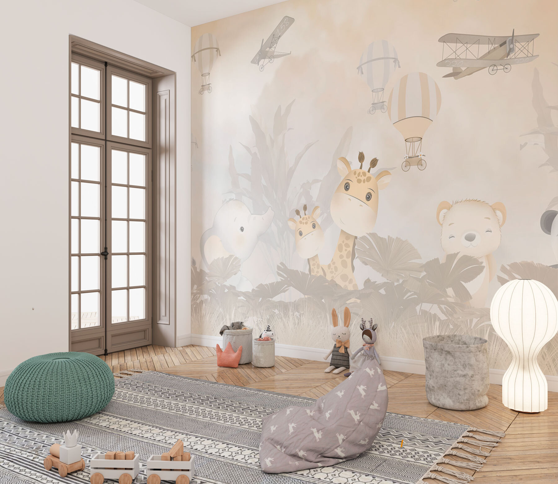 Érezted már úgy, hogy a gyerekszobádra ráférne egy kis varázslat? Ismerd meg a “Hőlégballon az égen” falfestményt, egy varázslatos darabot, amely tökéletes minden kis álmodozó számára. Képzeld el: játékos hőlégballonok és bájos állatok lebegnek a lágy, szeszélyes égbolton. Mintha egy mesekönyv elevenedne meg a faladon.
