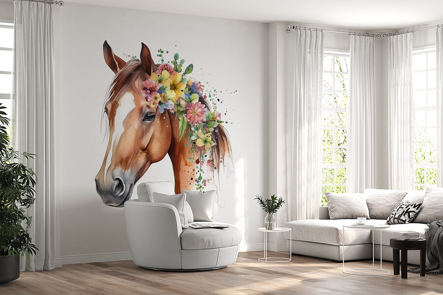Képzelje el, hogy belép egy szobába, és egy fenséges, élénk virágokkal díszített ló fogadja. Ez a falfestmény pontosan ezt teszi – egy egyszerű falat varázsol kellemes meglepetést! Tökéletes az állatbarátoknak, a gyerekeknek, vagy bárkinek, aki egy kis szeszélyt szeretne vinni a helyiségébe. A színek annyira élénkek, hogy gyakorlatilag egyenesen a falról pattannak ki. Képzeld el a kisgyermeked örömét vagy a vendégeid mosolyát ennek a lenyűgöző ménesnek a láttán.