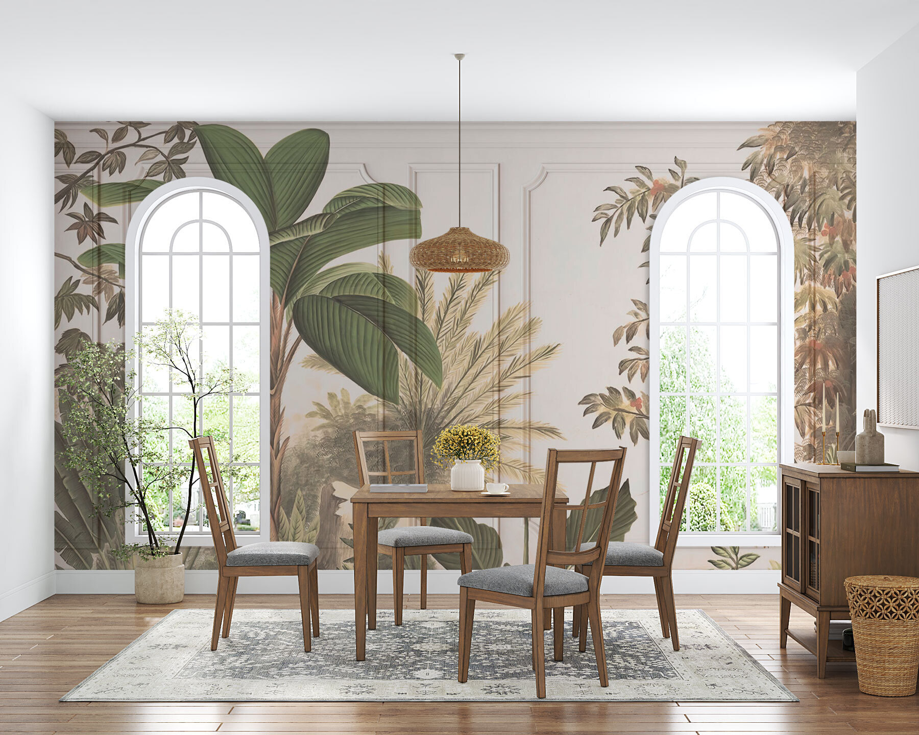 Képzeld el, hogy besétálsz a szobádba, és BAM! Egy buja dzsungeljelenet hűsöl a faladon. Ez a falfestmény olyan, mintha egy egzotikus üdülőhelyre lépnél, egyenesen a nappalidból. Gondolj a zöldellő lombokra és a fákra, amelyek a láthatatlan szellőben ringatózva teszik a dolgukat. Trópusi hangulatot áraszt, amely frissé és élettel telivé varázsolja a teret.