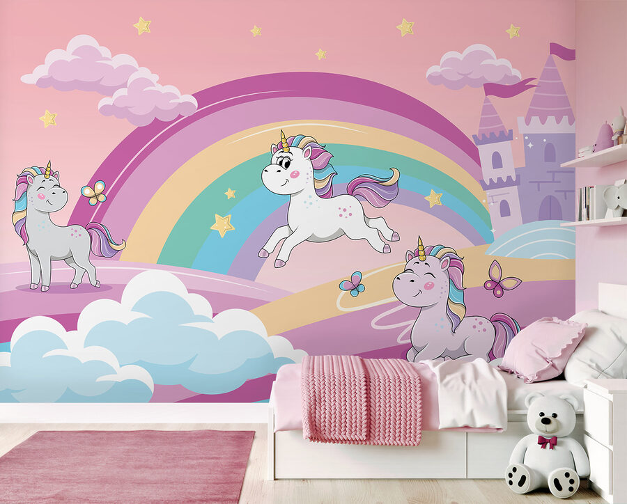 Alakíts át bármilyen hétköznapi szobát szeszélyes szabadulásra ezzel az imádnivaló egyszarvú falfestménnyel! Képzeld el a színes szivárványok körül táncoló pillangókat, miközben játékos egyszarvúak táncolnak a lágy rózsaszín ég alatt. Mintha egy mesekönyvbe lépnél, ahol a varázslat csak egy szívdobbanásnyira van. Ez a falfestmény tökéletesen beindítja a kisgyermek képzeletét, és otthonos, vidám hangulatot kölcsönöz, így minden napot kalandnak érezhetsz. Biztos, hogy mosolyt és kacagást, valamint egy cseppnyi örömet fog okozni minden alkalommal, amikor belépnek. Ki ne szeretne egy kis mesebeli varázslatot a falára?