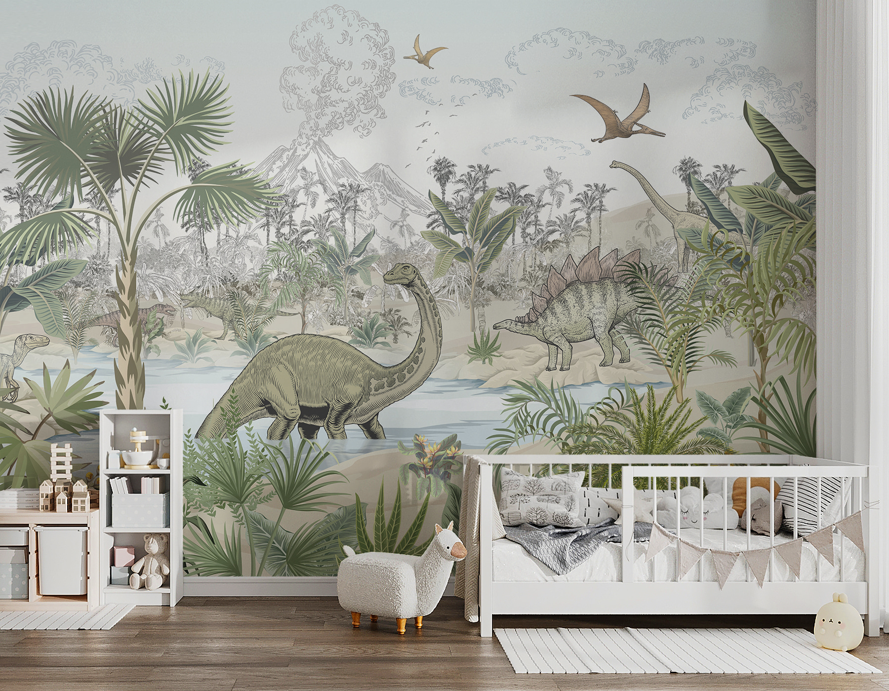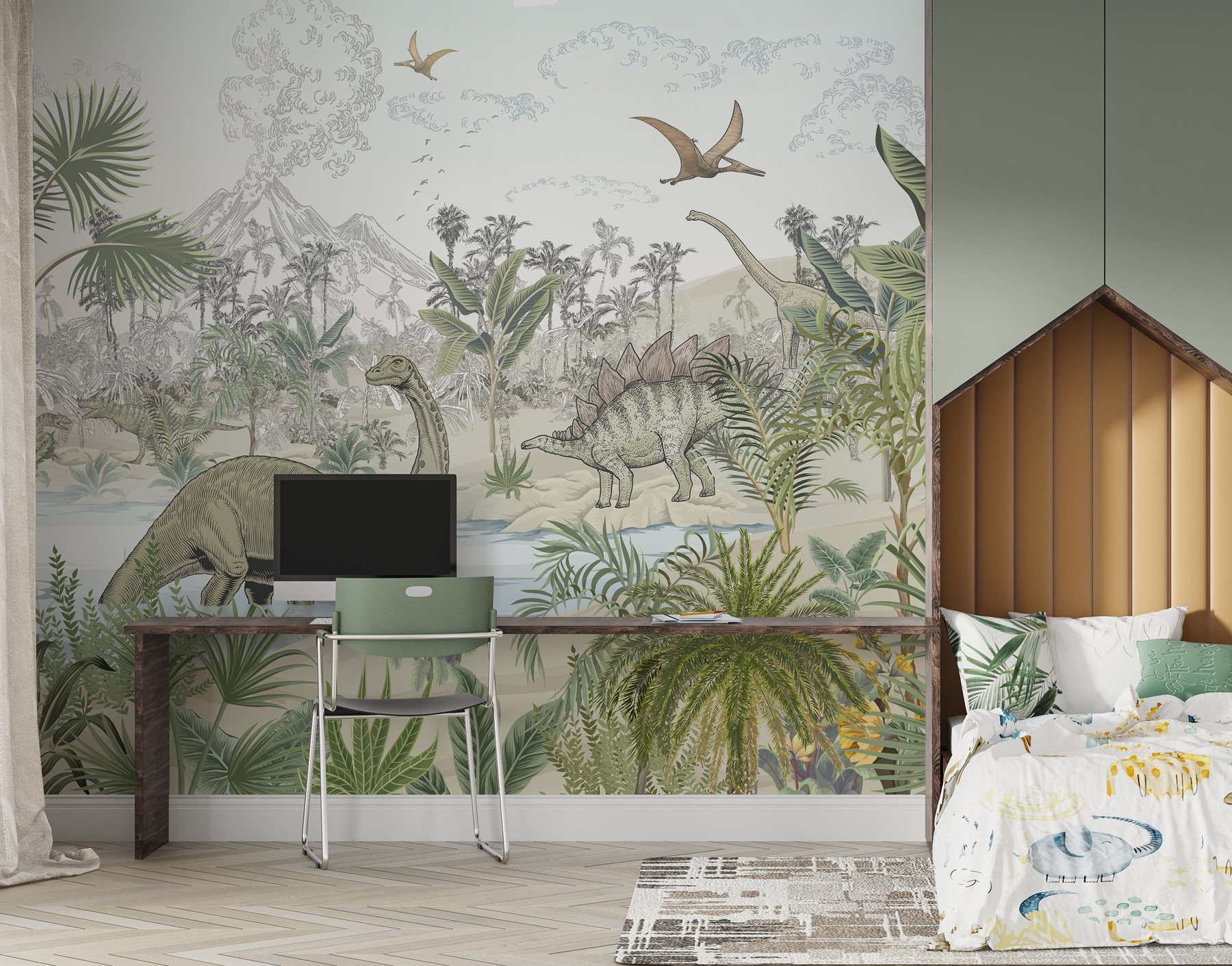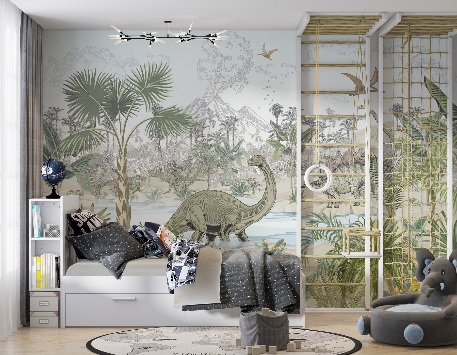 Tökéletes játszószobákba vagy hálószobákba, olyan, mintha a jura korszak egy darabját közvetlenül az otthonodba invitálnád. A színek lágyak, mégis élénkek, melegséget és csodálatot keltenek. A gyerekek imádni fogják a dinoszauruszos meséket, miközben ilyen buja táj veszi őket körül. Ez nem csak dekoráció; ez egy kapu egy olyan világba, ahol a dinoszauruszok uralkodnak és kalandok várnak rájuk. Minden pillantás kacagásra és kíváncsiságra ösztönöz – ki ne szeretne egy ilyen társat?