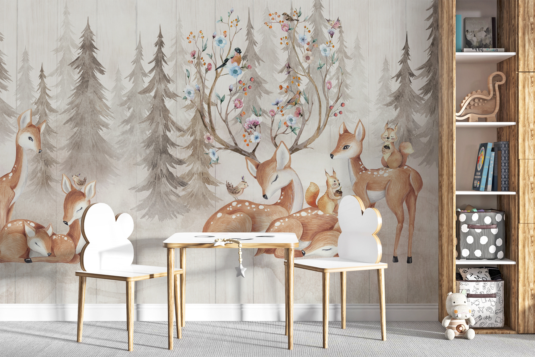 Képzeld el, hogy minden nap egy erdei álomba lépsz – milyen varázslatos ez? Ez a “Szarvason ülő madár” falfestmény olyan, mintha egy mesekönyv elevenedne meg. A finom szarvas és a bájos madarak egy hangulatos, varázslatos erdőből származó jelenetet teremtenek. Tökéletes gyerekszobába vagy gyerekszobába, a szelíd csoda és a béke érzetét kelti.