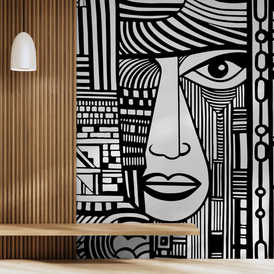 Akartál már olyan művészetet, amely megragadja a válladat és figyelemre késztet? Akkor ez a “Fekete-fehér rajz egy arcról” falfestmény neked szól. Tökéletes azok számára, akik szeretik a dizájner háttérképeket, de egy kicsit… merészebbre is vágynak. A merész vonalak és a feltűnő kontrasztok magával ragadnak – szinte olyan, mintha az arc mély beszélgetést folytatna veled. Képzelje el, hogy egy hosszú nap után besétál a szobájába, és azonnal egy kicsit kifinomultabbnak érzi magát, mintha egy modern művészeti galériába lépett volna be. Ez a falfestmény kíváncsiságot és egy csipetnyi rejtélyt kölcsönöz bármely helyiségnek. Ráadásul egyszerűen csak menő, nem igaz?