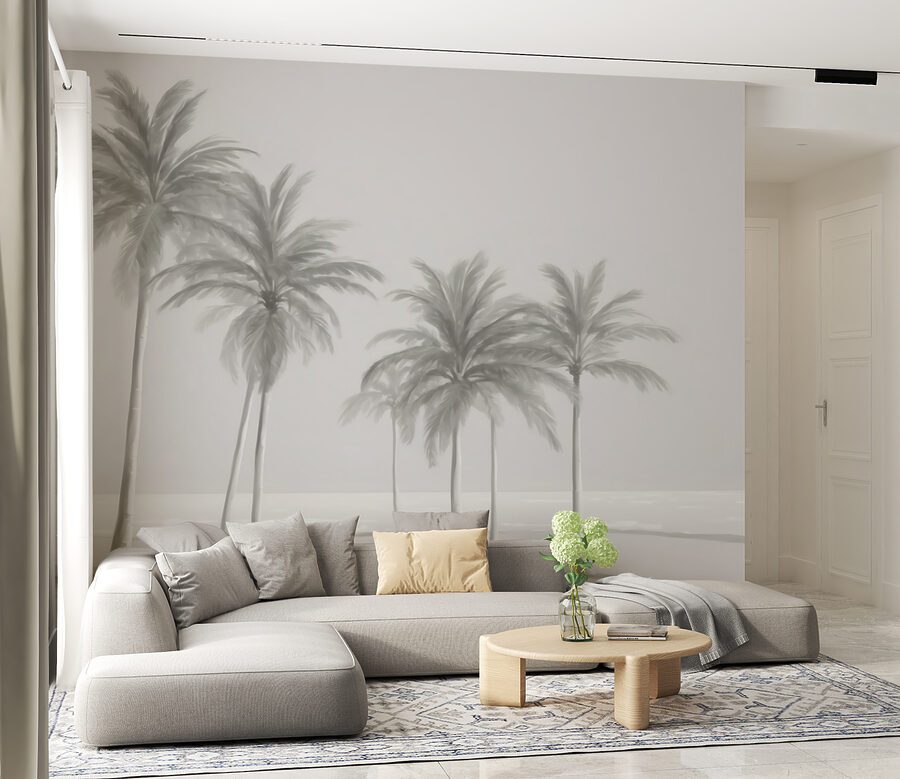 Ez a falfestmény egy jelenetet ábrázol, amelyen több magas, elegáns pálmafa lágyan ringatózik, mintha egy tengerparti szellő érintené. A lágy, tompa színek szinte álomszerűvé teszik a képet, kicsit olyan, mint egy vintage fotó, amely egy nyugodt napot örökít meg a parton. Bármilyen dekorációhoz illik – modern, boho, amit csak akarsz. Ráadásul szuper megnyugtató; az a fajta látvány, amitől azonnal kifújod magad.