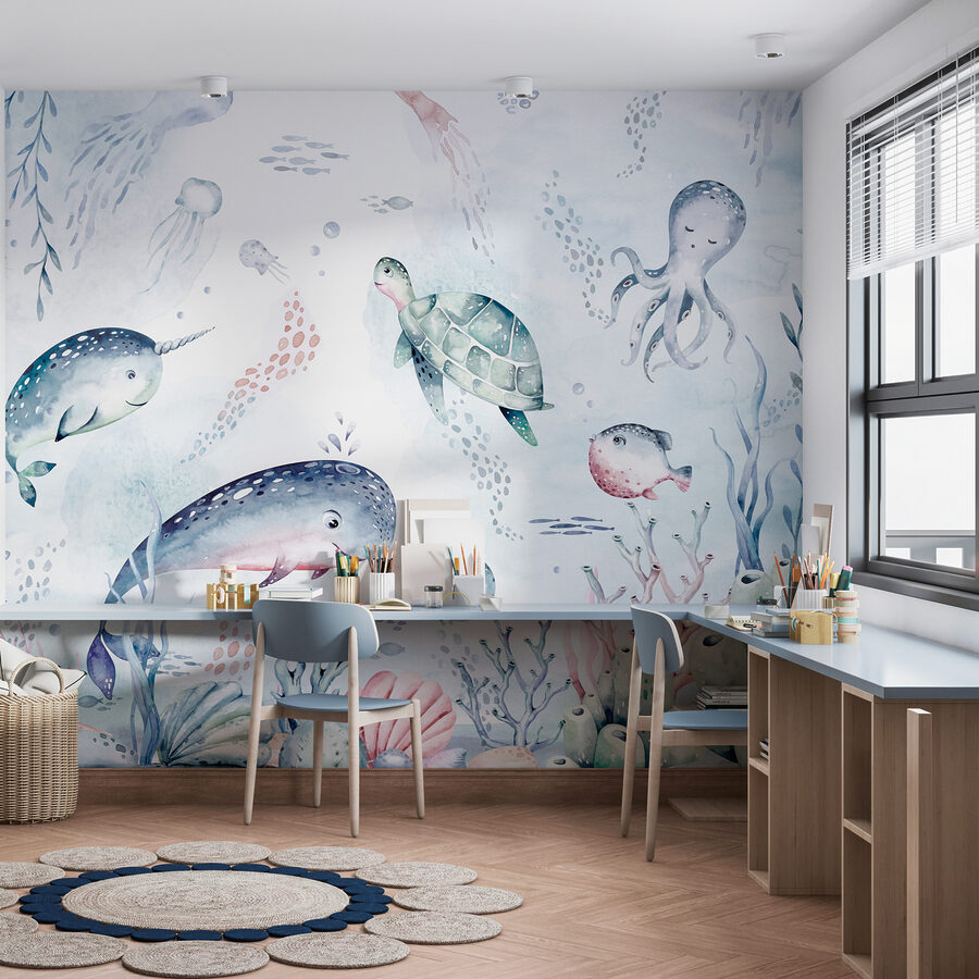 Sziasztok! Elképzelted már, hogy egy álomszerű víz alatti világba csöppensz, valahányszor belépsz egy szobába? Nos, ez az akvarell falfestmény segít neked. Olyan, mint egy szeszélyes csobbanás az óceán varázslatából, egy szuper hűvös teknőssel, amely egy varázslatos tengeren siklik keresztül. Tökéletes gyerekeknek, csecsemőknek, vagy bárkinek, aki rajong a tengerparti hangulatért. A visszafogott, mégis élénk színek egy nyugodt, szinte játékos óceáni jelenetet teremtenek, melyben imádnivaló tengeri lények úszkálnak – olyan érzés, mintha maga az óceán adna egy csókot a falaknak. Ez nem csak dekoráció; ez egy mini kaland, ami csak arra vár, hogy megtörténjen!
