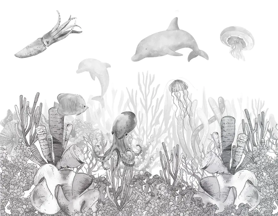 Képzeld el, hogy ez a falfestmény feldobja a gyerekszobát vagy a saját kreatív teredet – olyan, mintha egy csobbanásnyi óceáni varázslatot varázsoltál volna be a szobádba. A szeszélyes akvarell egy tintahalat ábrázol, más tengeri lények mellett, élénk és játékos érzést kelt. Képzelje el: a víz alatti kaland és a művészi báj keveréke. Akár az óceánról álmodozó tinédzser, akár a tenger élővilága által lenyűgözött kisgyermek, akár egy nyugodt menekülésre vágyó felnőtt, ez a falfestmény lágy, fantáziadús tengeri tájba burkol. Ez nem akármilyen falikép, ez egy kapu a mélykék tenger csodáihoz, közvetlenül a te hangulatos sarkodban!
