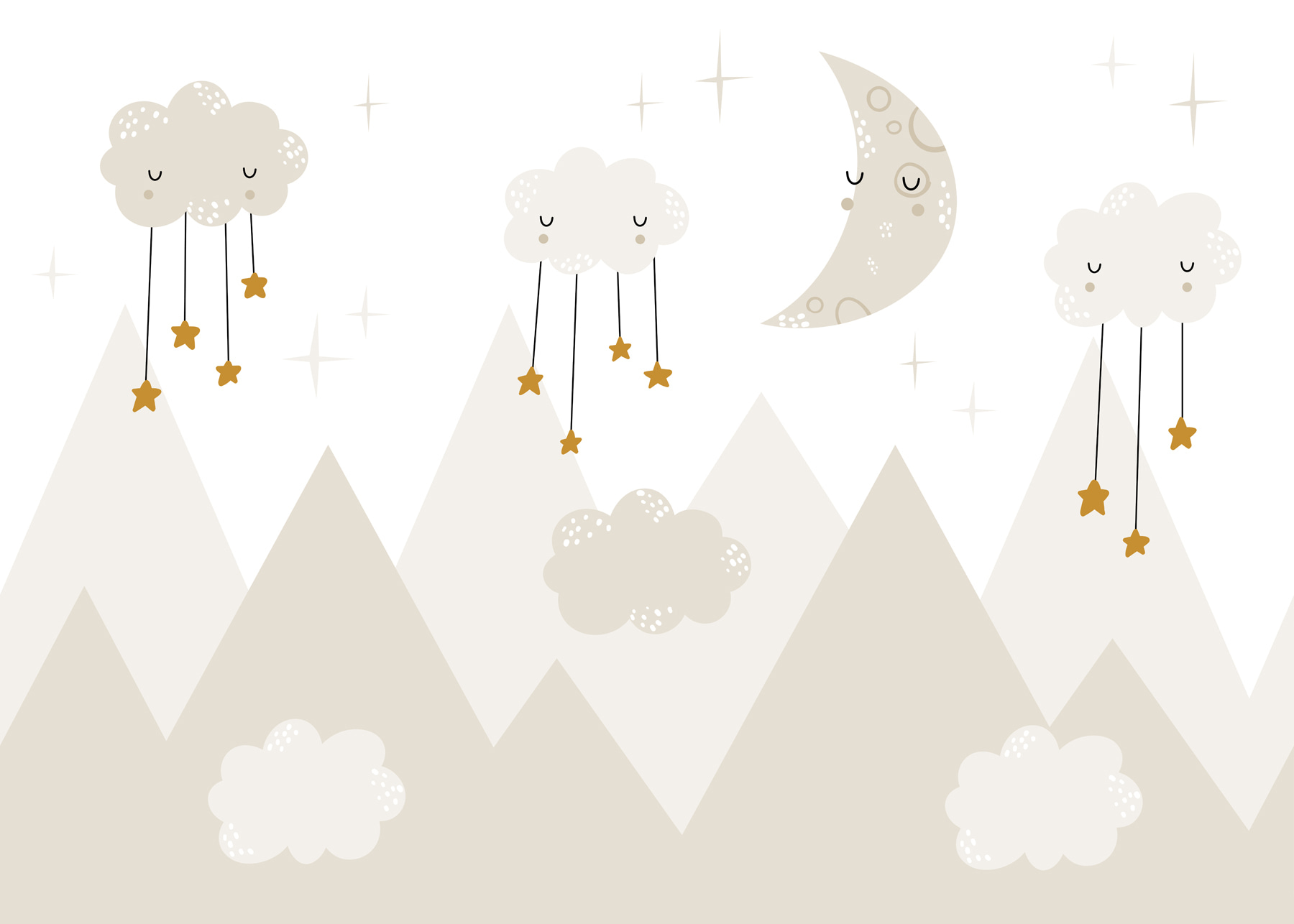 Képzelje el ezt: egy álmodozó éjszakai égbolt freskó álmos holddal és hangulatos felhőkkel, amelyeken csillagok lógnak, és gyengéden ragyognak a hegycsúcsok felett. Mintha egy szeszélyes esti mesébe csöppennél! Tökéletes gyerekszobába vagy gyerekszobába, ez a falfestmény ötvözi a képzeletet és a kényelmet – felpezsdíti a kicsik kreativitását, miközben megnyugtató hangulatot teremt. Gondolj az édes álmokra és a lefekvés előtti kacagásra. Ráadásul ki ne szeretne elaludni egy ilyen elbűvölő és nyugtató jelenet alatt? Ez több mint egyszerű dekoráció – ez egy apró kaland, közvetlenül a falon.