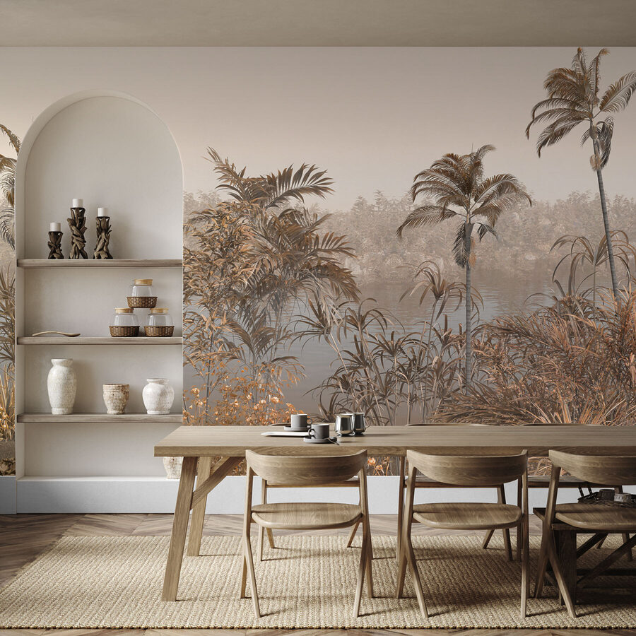 Képzelje el, hogy minden alkalommal, amikor belép a szobába, egy nyugodt vízparti oázisba kerül. Pontosan ezt kapod a “Falfestmények Pálmafa egy víztest mellett” című szobával. Olyan, mintha kókuszvizet kortyolgatnál egy kis csendes elmélkedéssel. Ez a falfestmény tökéletesen alkalmas arra, hogy az anyatermészetet a belső térbe hozza, és minden a nyugtató hangulatról szól – lágyan ringatózó pálmafák, az eget tükröző víztömeg, és egy békés környezet, amely álmodozásra hív. Ez a természet ihlette dekoráció és az érzékek kis elvonulása édes pontján van. Képzelje el, hogy olyan térbe lép, ahol mindig szellősnek és könnyednek érzi magát – még a stresszes napokon is. És hé, ha jól hunyorítasz, talán hallod a pálmalevelek susogását és érzed a hűvös szellőt.