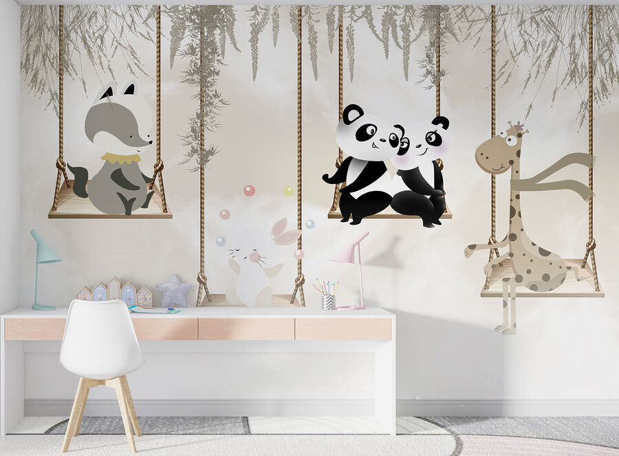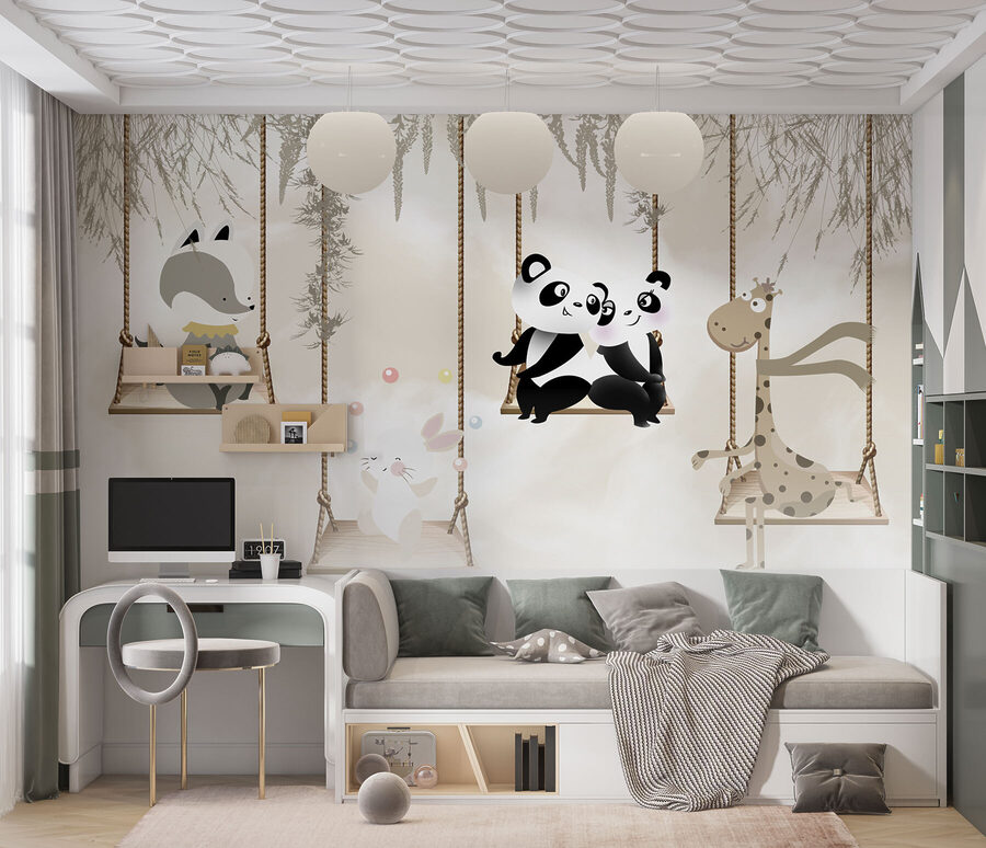 Megrekedtél, hogy megtaláld a tökéletes érintést a kisgyermeked szobájába? Képzelje el ezt: két imádnivaló panda, amelyek lágyan lengnek egymás mellett, hangulatos, szeszélyes hangulatot kölcsönözve a térnek. Ez a falfestmény, a “Pár pandák hintán ülnek”, minden szempontból megfelel – aranyos, bájos és egy kicsit szívmelengető. Képzelje el, ahogy a kisgyermekét a kiságyába vagy az ágyába teszi, ahol új pandapajtásaival együtt álmodik majd az erdei kalandokról. Ez nem csak dekoráció; ez egy mini szökés az ölelés és a móka világába. Ó, és a játszószobákban is remekül működik! Készülj fel néhány extra “áu”-ra lefekvés előtt.