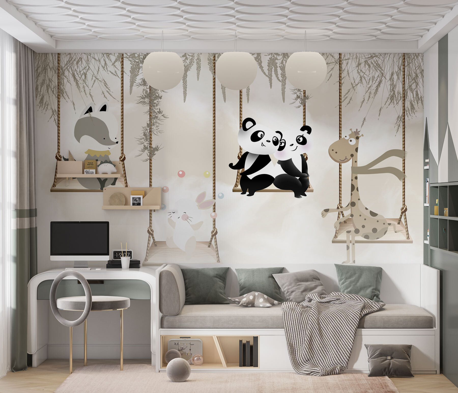 Megrekedtél, hogy megtaláld a tökéletes érintést a kisgyermeked szobájába? Képzelje el ezt: két imádnivaló panda, amelyek lágyan lengnek egymás mellett, hangulatos, szeszélyes hangulatot kölcsönözve a térnek. Ez a falfestmény, a “Pár pandák hintán ülnek”, minden szempontból megfelel – aranyos, bájos és egy kicsit szívmelengető. Képzelje el, ahogy a kisgyermekét a kiságyába vagy az ágyába teszi, ahol új pandapajtásaival együtt álmodik majd az erdei kalandokról. Ez nem csak dekoráció; ez egy mini szökés az ölelés és a móka világába. Ó, és a játszószobákban is remekül működik! Készülj fel néhány extra “áu”-ra lefekvés előtt.