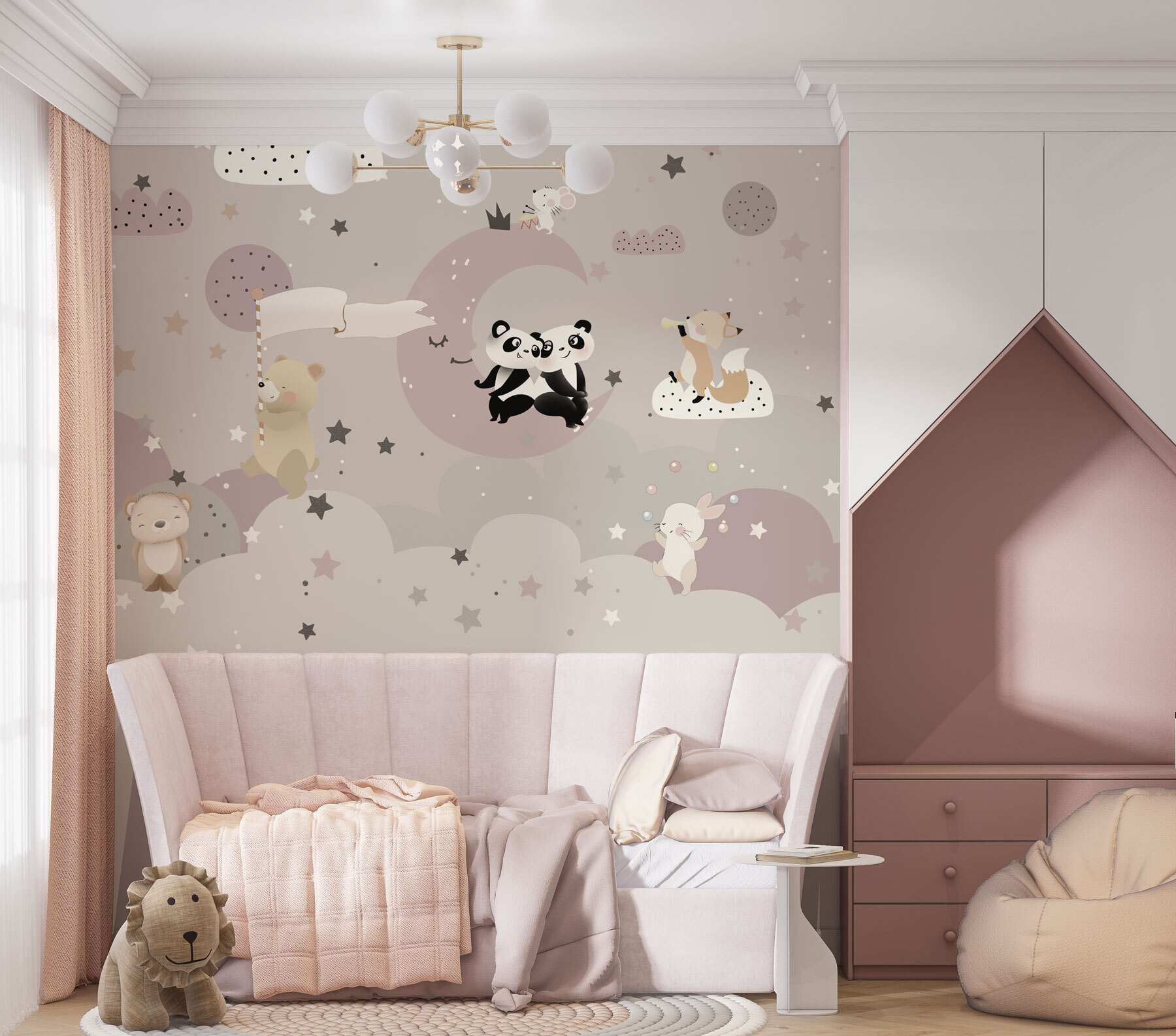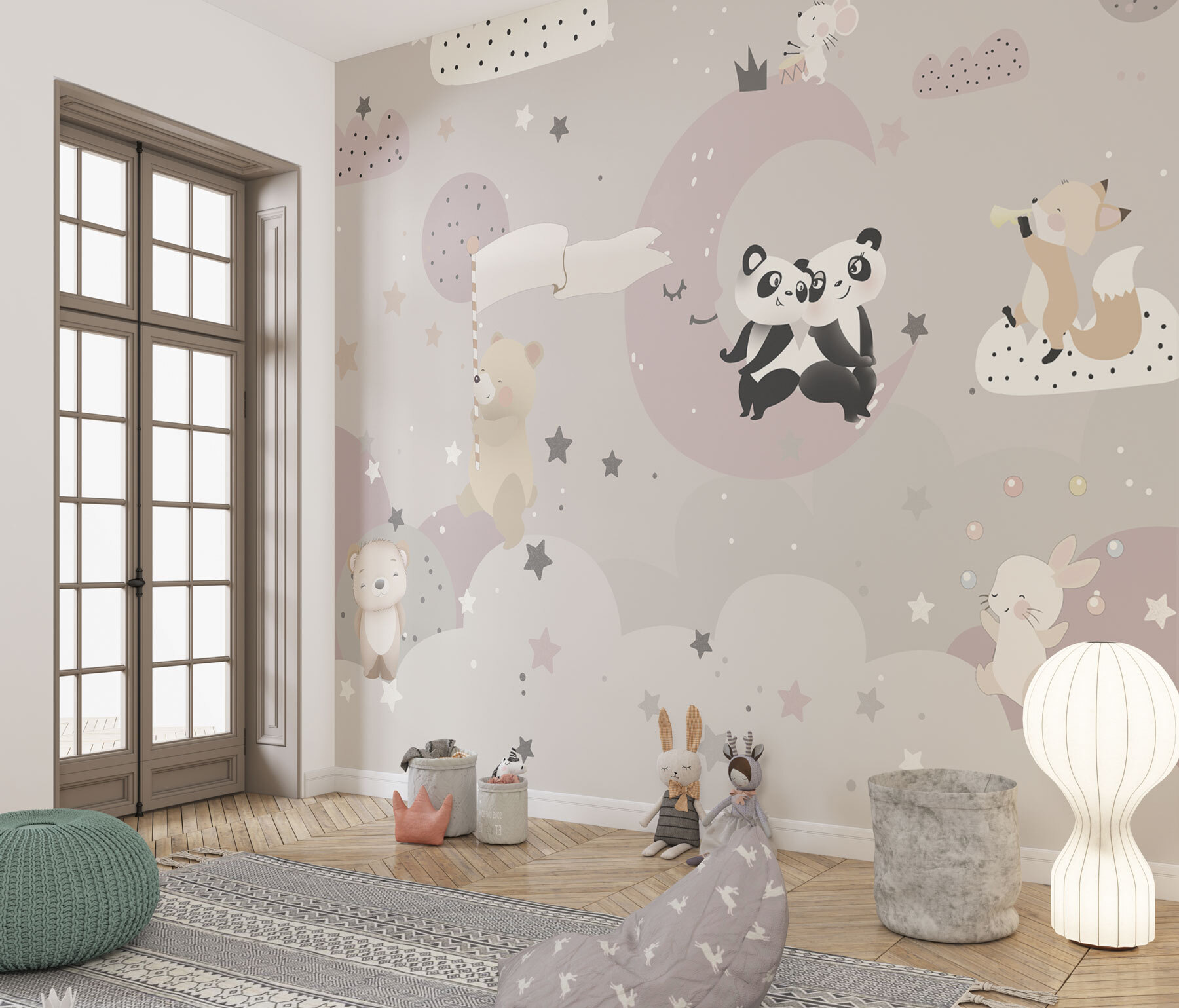 Szeretne egy kis szeszélyt vinni a gyerekszobába? Ez a “Fali falfestmény egy medve rajzfilmje” pont megfelelő! Képzelj el egy hangulatos éjszakai égboltot, pasztellszínű csillagokkal és imádnivaló medve barátokkal megspékelve – beszéljünk az azonnali bájról. Tökéletes gyerekszobákba vagy játszószobákba, ez a falfestmény lágy tónusai és bájos karakterei álomszép, nyugtató hangulatot teremtenek. Képzelje el, ahogy gyermeke arra ébred, hogy egy édes medve lobogtat egy zászlót, kuncog a pandákon, vagy észrevesz egy kis rókát, amint dallamot játszik. Ez a fal mesél, végtelen képzeletre és játékos álmokra invitál. Ráadásul szórakoztató beszélgetésindító – a barátai meg fogják kérdezni, hogy hol találtál egy ilyen elragadó darabot. Hidd el, ez nem csak egy falfestmény, ez egy egész hangulatot teremt a kisgyermeked helyiségében.