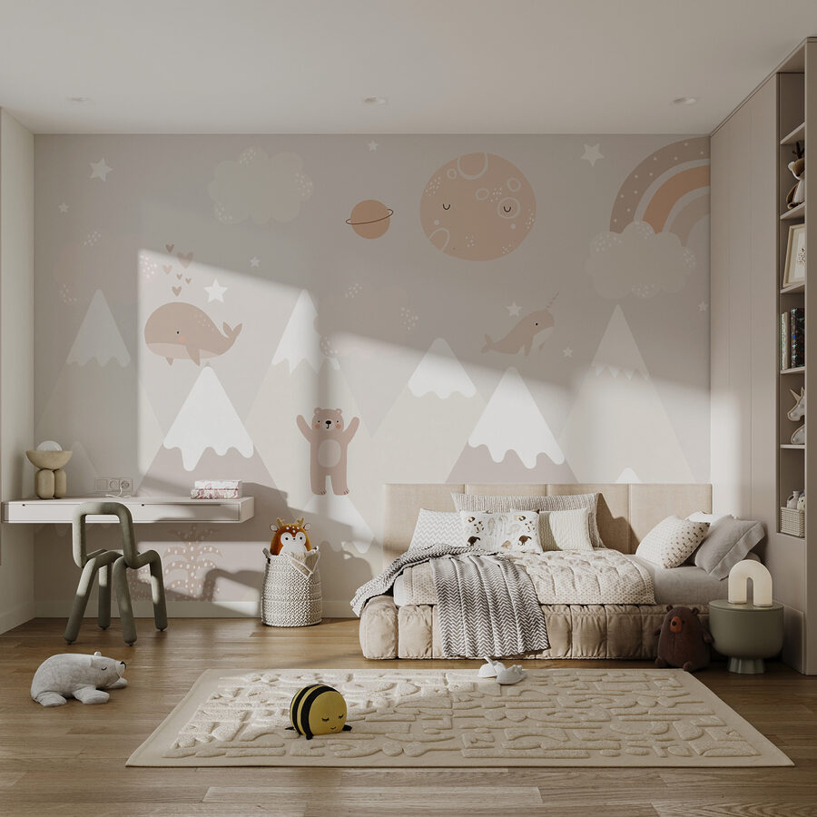 Ez a bájos “Cartoon Whale with Stars” falfestmény olyan, mintha egy szeszélyes álomba lépnél! Tökéletes a gyerekszobába, gyerekszobába vagy bármilyen játékos térbe, hangulatos, varázslatos hangulatot kölcsönöz, amely egyszerre megnyugtató és szórakoztató. Képzeld el, ahogy a kicsik mosolygó hold alatt elalszanak, a csillagok között barátságos bálnák és narválok lebegnek – tiszta esti mese varázslat! A lágy pasztellszínek és a kedves karakterek nyugodt, hívogató légkört teremtenek, így csodálatos hátteret biztosítanak az összebújós vagy játszadozós időtöltéshez. Fogadd el a bájt, és hagyd, hogy ez a varázslatos jelenet örömet és kreativitást varázsoljon a teredbe!