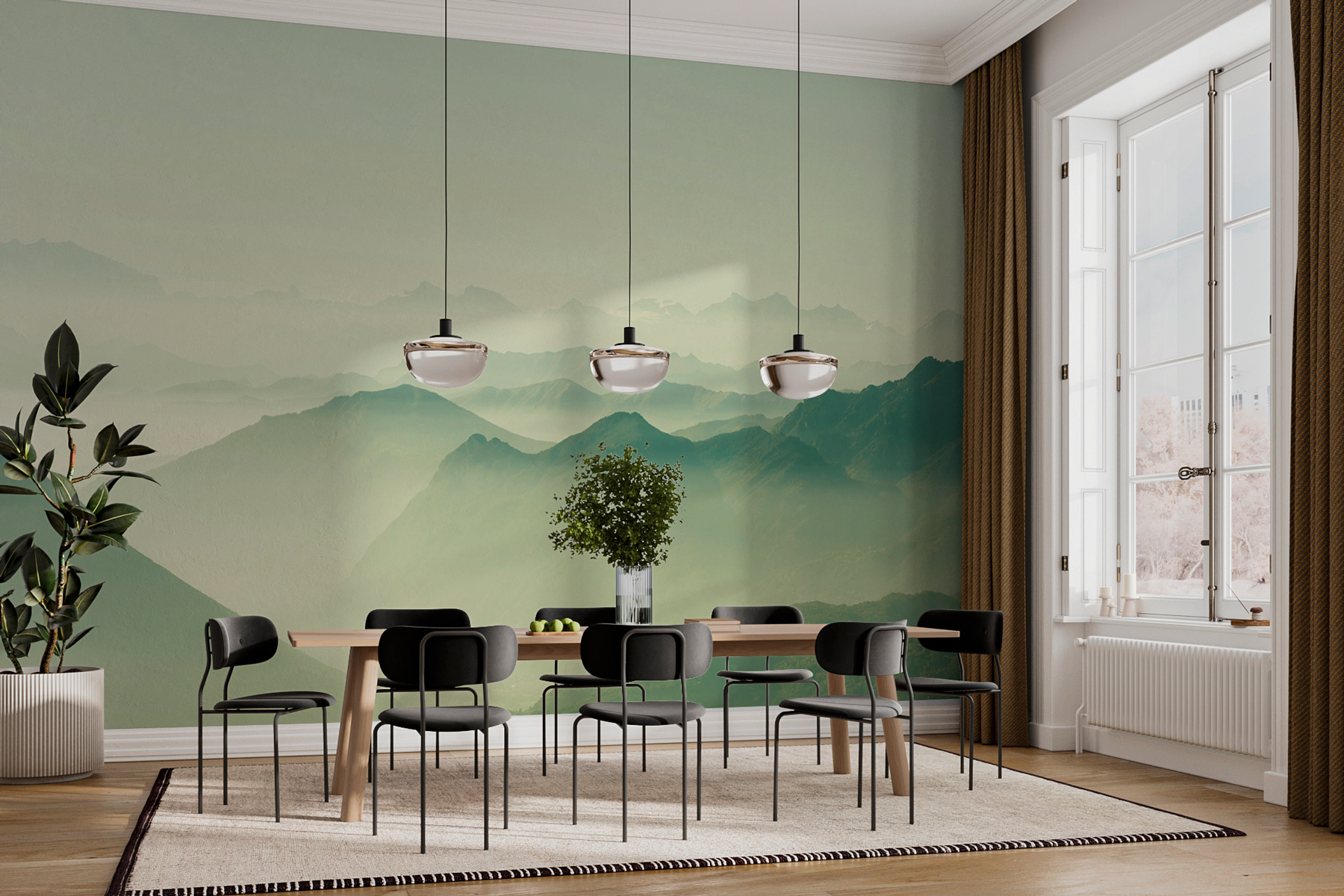 Képzelje el, hogy minden nap a ködös hegyek nyugodt szépségére ébred a napfelkeltekor, anélkül, hogy elhagyná a kényelmes szobáját. Ez a “Ködös hegyek lágy napfényben” falfestmény tökéletesen megragadja ezt a szelíd, álmodozó hangulatot. Olyan, mintha egy nyugodt, kora reggeli kirándulást hozna egyenesen az otthonába – ébresztőóra és szúnyogriasztó nélkül. Tökéletes minden olyan helyiségbe, amelynek szüksége van egy kis nyugalomra és egy kis természetes művészetre. Legyen szó nappaliról, hálószobáról vagy irodáról, ez a falfestmény lágy napfényével és békés jelenlétével átalakítja a hangulatot. Hegyek, napfény, béke – mindez egy gyönyörű képbe csomagolva, amelytől úgy érezheti, hogy egy csendes visszavonuláson van, még akkor is, ha a gyerekek ordítoznak a háttérben. Szép, széleskörű lehetőség azoknak, akik értékelik az egyszerű, természet ihlette pillanatokat.