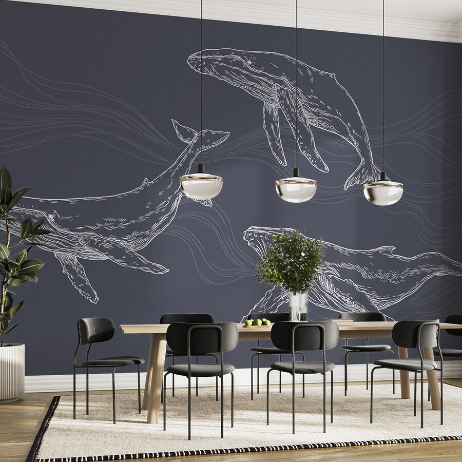 Képzelje el, hogy belép egy szobába, és egy fenséges bálnacsapat fogadja, amely kecsesen úszik a falon. Ez a falfestmény pontosan ezt a hangulatot kelti – megnyugtató, mégis egy kicsit kalandos. Ideális bármely olyan helyiségbe, amelynek szüksége van egy kis óceáni varázslatra. A bálnák ugyanis nem csak úsznak, hanem siklanak is. Ez a falfestmény megragadja ezt az eleganciát, és életre kelti a falakat. Tökéletes egy tengerparti témájú szobába, vagy csak egy kis tengerparti hangulatot varázsol oda, ahol a legkevésbé számítasz rá. Ráadásul azok a szelíd vonalak és hullámok… tiszta művészi boldogság! Merüljön el, és hagyja, hogy ezek a csodálatos teremtmények víz alatti paradicsommá varázsolják terét.