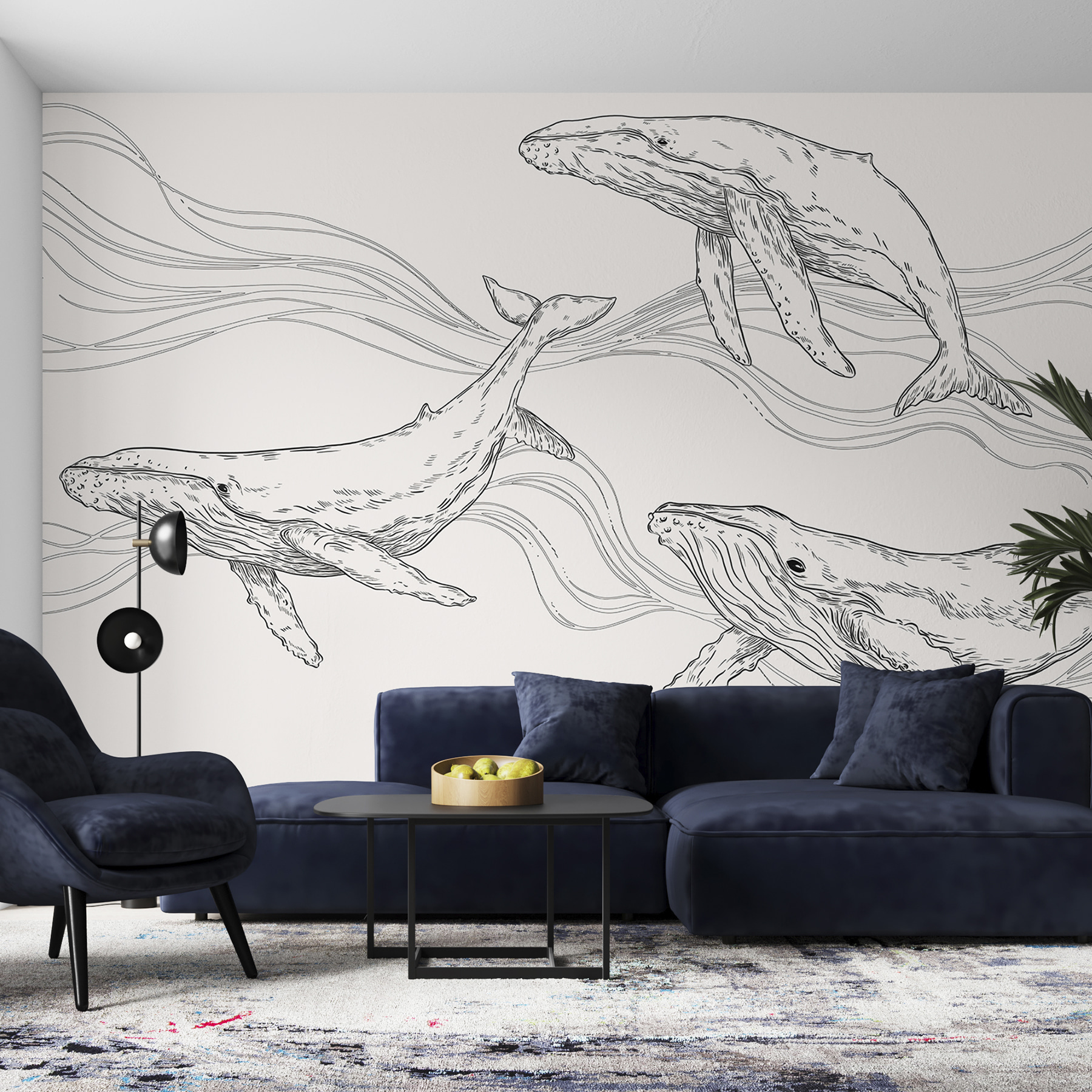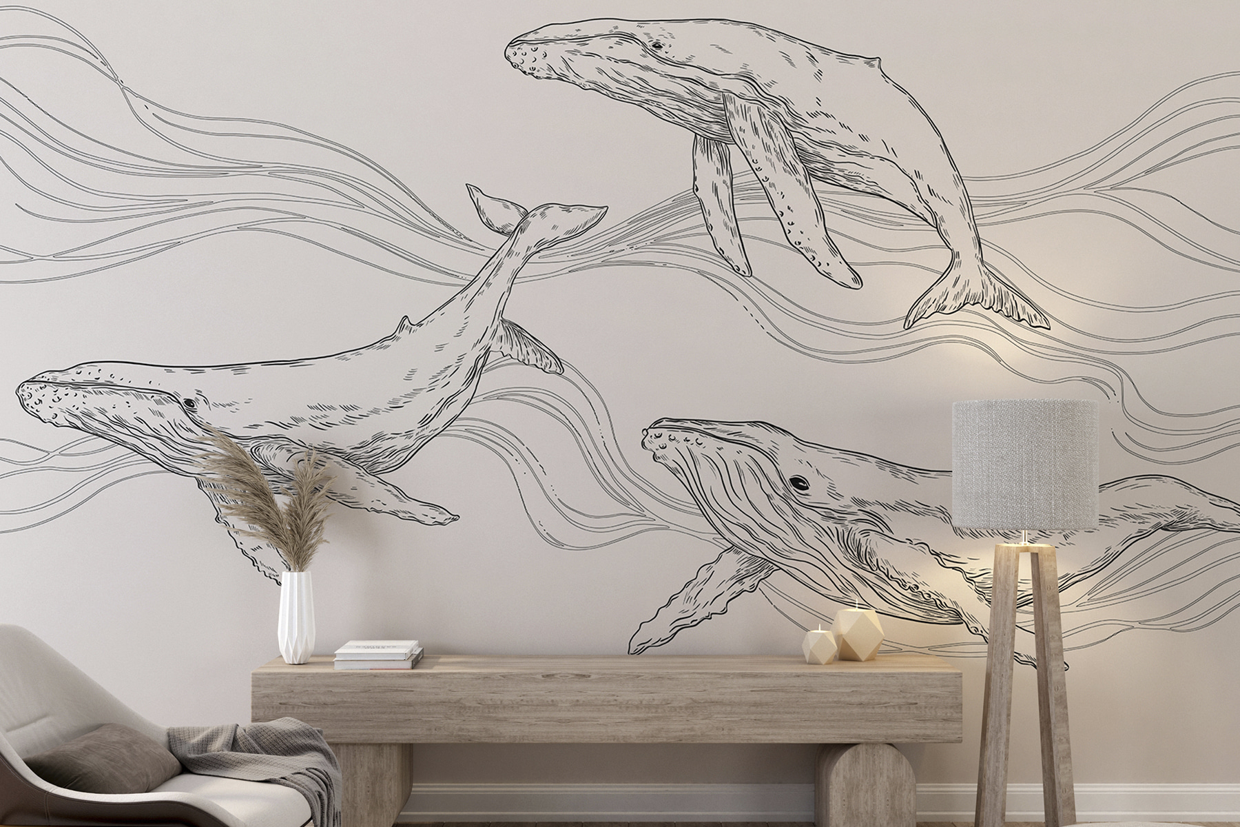 Képzelje el ezt: fenséges bálnák hármasa siklik a mélyben, pont az Ön nappalijában. Ez a falfestmény, amelynek szeszélyes címe “A vízben úszó bálnák csoportja”, olyan, mintha az óceán nyugalmát egyenesen az Ön helyiségébe hozná. Az Állatos falfestmények, a Dizájner tapéta falra, a Népszerű falfestmények és a Tengerparti falfestmények kategóriák része – alapvetően minden hitelesíthető.