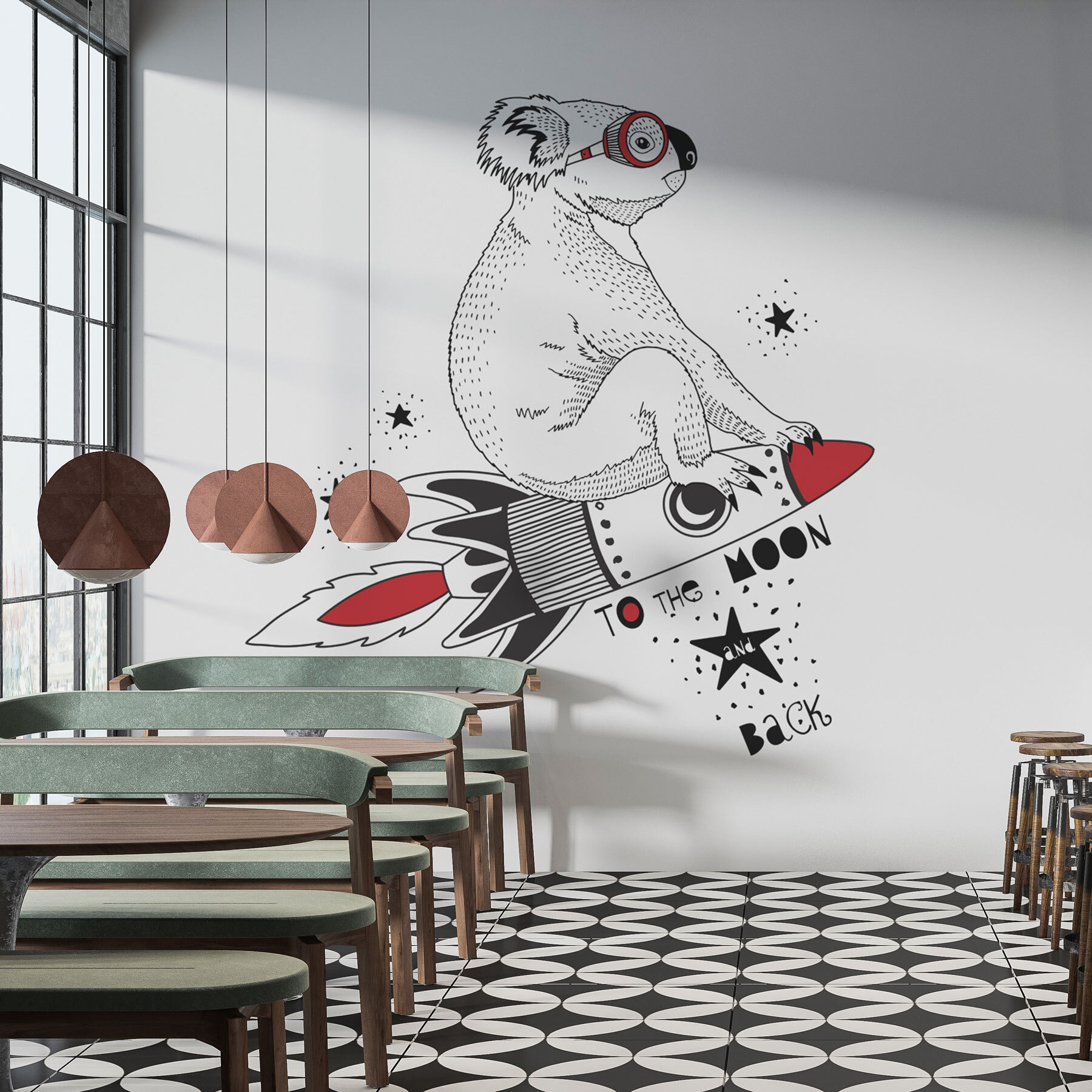 Nézd meg ezt az imádnivaló falfestményt “Koala a rakétán” címmel. Tökéletes egy kis szeszélyes báj hozzáadásához bármelyik szobához, ez a falfestmény jól illeszkedik az olyan kategóriákba, mint az Állat, Gyermekek, Galaxis, Csecsemők – érted a lényeget. Képzelj el egy koalát repülőszemüvegben, amint egy mókás rakétán utazik a Hold felé! Gyermeked helyisége hirtelen egy vidám galaxis egy kis darabkájává válik. Teljesen olyan dolog, ami beindítja az esti meséket, nem igaz? Elragadóan mókás, és biztosan felcsillan a kis szemek szeme, és óriási fantáziát ébreszt. Képzeld el az “ó” és “ááá”-kat mindenkitől, aki meglátja! Ráadásul fantasztikus módja az űrkutatásról és kalandokról szóló álmok táplálásának. Ezzel a falfestménnyel szó szerint díszíted az álmokat. A Holdra és vissza, valóban!
