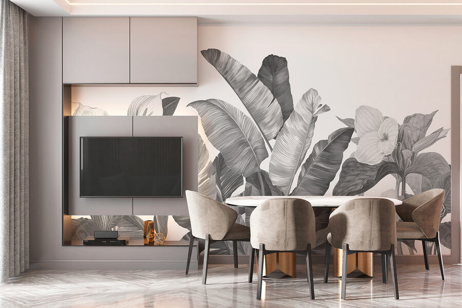Szóval, készen állsz egy minivakációra, ami csak egy pillantásnyira van? Merüljön el személyes monokróm dzsungelébe ezzel a falfestménnyel; elegáns, nyugtató és könnyedén menő.