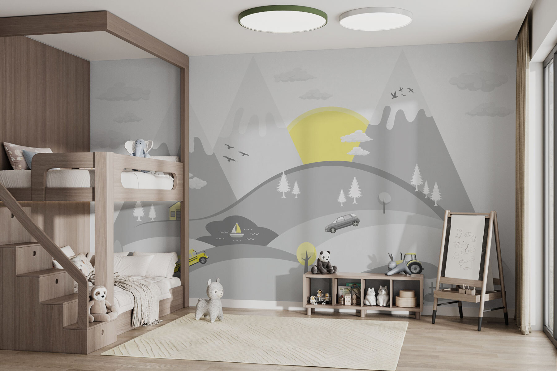 Gondoltad volna, hogy egy sárga iskolabusz ennyi bájt adhat egy szobának? Ez a bájos falfestmény egy vidám sárga buszt ábrázol a klasszikus fekete csíkokkal, amely egy festői útvonalon halad, amely szinte túlságosan is tökéletes. Képzeld el, hogy feldobhatná egy gyerek szobáját – azonnal elrepítené őket a kalandok és szórakozás szeszélyes világába! A hegyek, fák és játékos felhők háttere megnyugtatóan hat, így tökéletes a gyerekszobákba is. Az a fajta falikép, amely sokkal varázslatosabbá teszi a mese- vagy játékidőt. Akassza fel, és nézze, ahogy a képzeletük szárnyra kap!