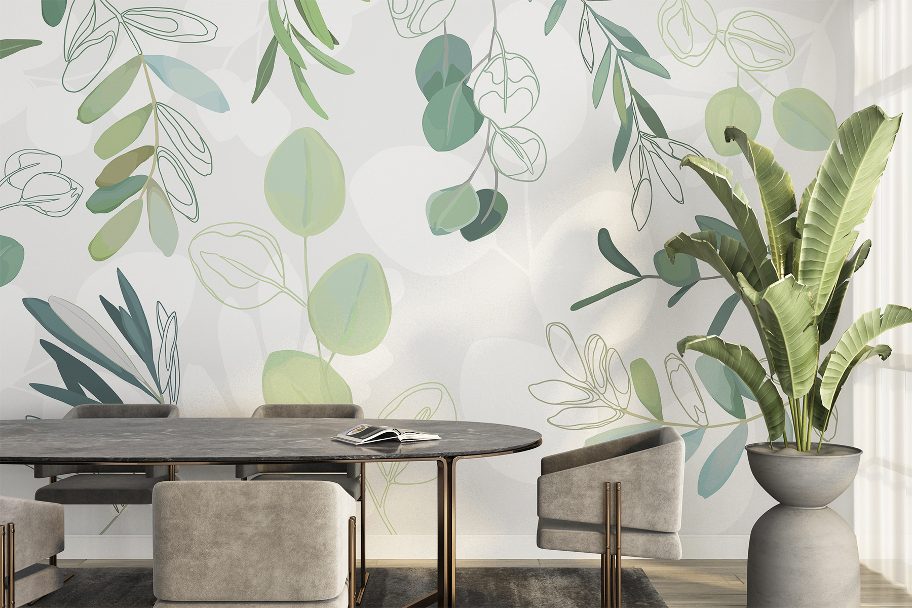 Alakítsa át terét nyugodt üdülőhellyé ezzel a bájos, zöld leveleket ábrázoló falfestménnyel, nyugtató fehér háttérrel. Képzelje el, hogy egy olyan szobába lép be, amely olyan, mint egy légies erdei menedékhely. Tökéletes mindenkinek, aki szeretne elmenekülni a mindennapi nyüzsgés elől, és a természet egy elegáns zugában hátradőlni – persze a bogarak nélkül. A gyengéd zöldek friss színpompát nyújtanak, míg a művészi hangulat elegáns hangulatot kölcsönöz. Legyen szó egy hangulatos olvasósarokról vagy egy élénk étkezőhelyről, ez a falfestmény olyan hívogató légkört teremt, amelybe könnyű beleszeretni. Ráadásul a vendégek biztosan megkérdezik majd, hol találtál egy ilyen elragadó darabot. Ez nem csak dekoráció; ez hangulatfokozó.