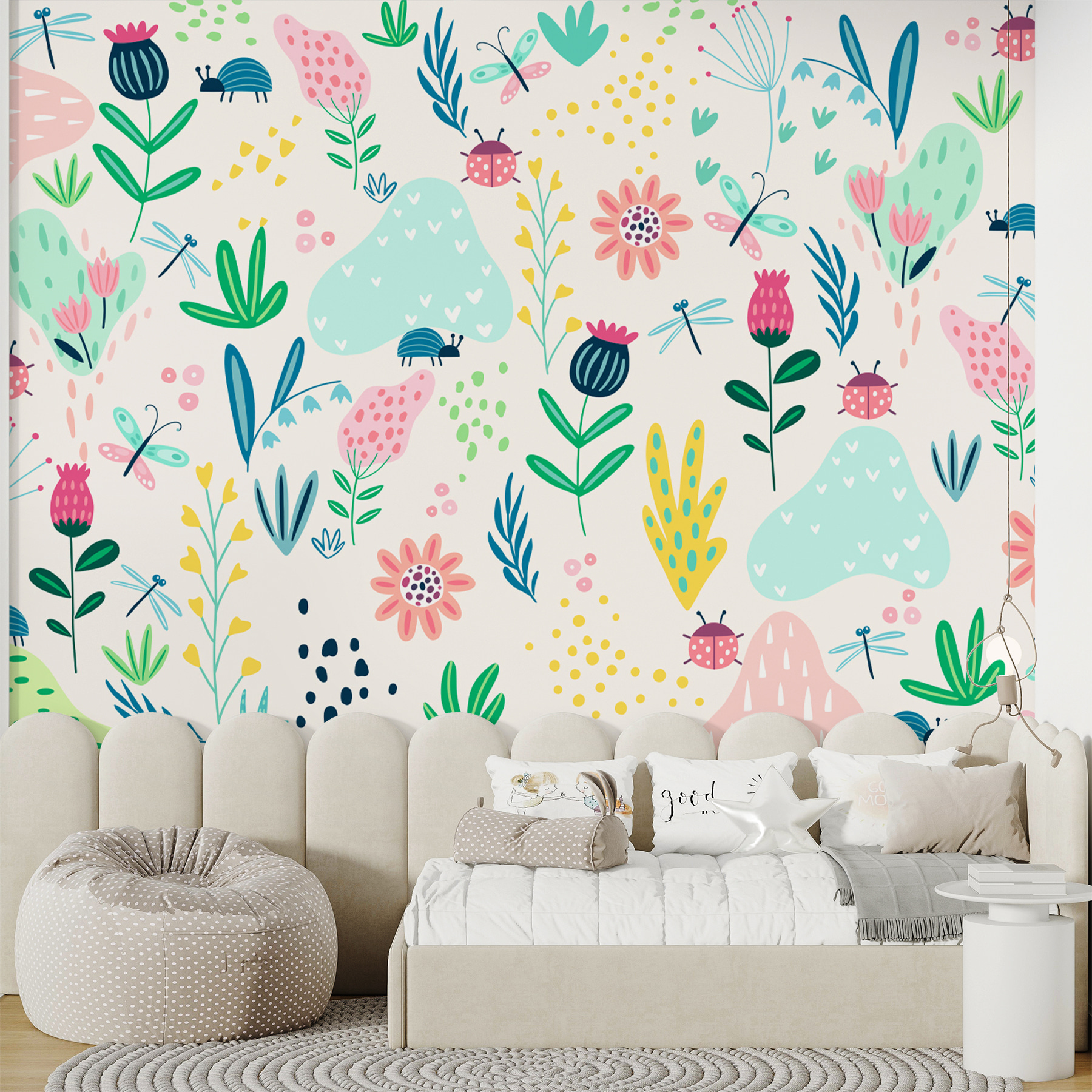 Képzeld el, hogy esti mesét olvasol ezzel a falfestménnyel a háttérben – a gyerekek képzelete elszabadul! Az élénk, vidám színek olyanok, mint egy lélegzetvételnyi friss levegő, és ne lepődj meg, ha azon kapod magad, hogy minden alkalommal mosolyogsz, amikor elsétálsz mellette. Akár a gyerekszobát varázsolja meseországgá, akár csak egy nappalit dob fel vidámsággal, ez a falfestmény rendelkezik azzal a vidám, gondtalan hangulattal, amelyre mindannyiunknak szüksége van.