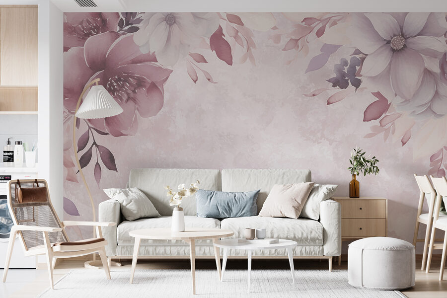 Nézze meg ezt a lenyűgöző freskót – “Pasztell virágos elegancia a kijelzőn”. Tökéletes, ha szereted a szeszélyes hangulatot a dekorációddal. Képzeld el, hogy besétálsz egy szobába, amely tele van álomszép akvarell bazsarózsákkal és lágy, gyengéd rózsaszín és lila színű virágokkal. Olyan, mintha egy tündérmesébe lépnél, igaz?