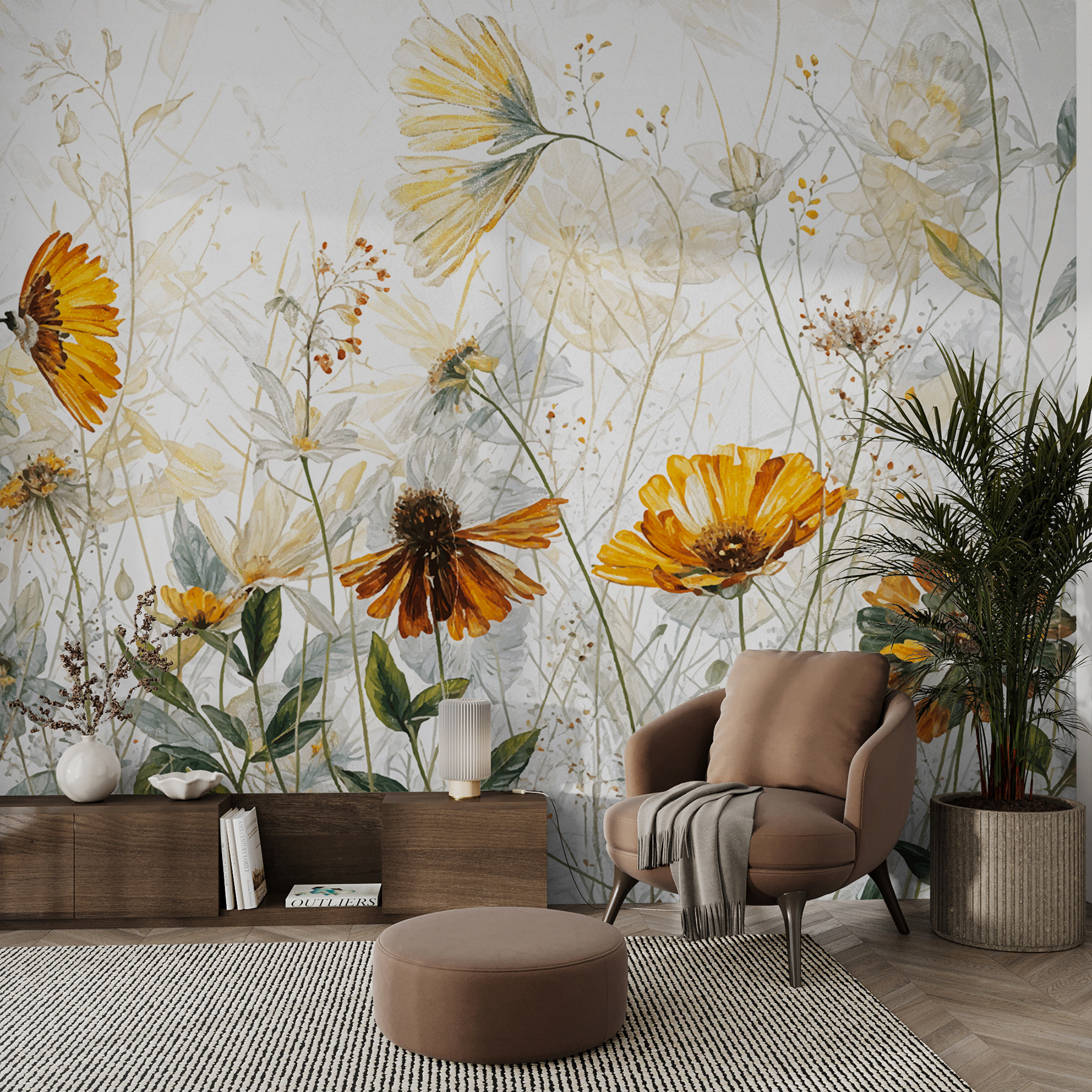 Képzelje el, hogy minden nap egy vadvirágokkal teli rétre ébred – ez a “Wildflowers Dancing in the Breeze” (Vadvirágok táncolnak a szélben) falfestmény ezt hozza el a helyiségébe. Olyan, mintha a falaid a természet gyengéd ölelését kapnád. A lágy árnyalatok és a finom akvarell dizájn olyan érzést kelt, mintha a virágok közvetlenül a szemed előtt ringatóznának – megnyugtatóan és gyönyörűen. Tökéletes ahhoz, hogy egy kis szeszélyt vigyél a nappalidba, vagy hogy nyugodt hangulatot varázsolj az olvasósarokba. Van ez a varázslatos módja annak, hogy nyugodtnak és ihletettnek érezze magát, mint egy friss levegővétel a beltérben.
