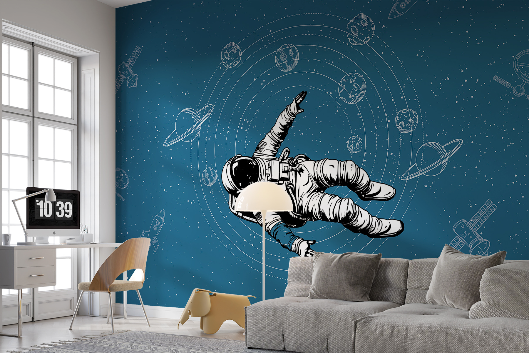Dobja fel terét ezzel az ‘Astronaut Floating in Space’ falfestménnyel, amely a Galaxy Fotótapéta kollekciónk része. Képzelje el, hogy minden alkalommal, amikor belép a szobába, a kozmoszba sodródik. A mélykék, csillagokkal és bolygókkal tarkított háttér tökéletesen alkalmas arra, hogy a kaland és a csoda érzését varázsolja bármelyik falra. Legyen szó akár egy gyerekszobáról, ahol az űrutazásról szóló álmok életre kelnek, vagy a saját személyes búvóhelyéről, ez a falfestmény nyugalmat és egy csipetnyi varázslatot hoz. Képzelje el, ahogy egy rohanó napon szünetet tart, és súlytalanul lebeg a galaxisok között. Tiszta szökés, egyenesen a falra!
