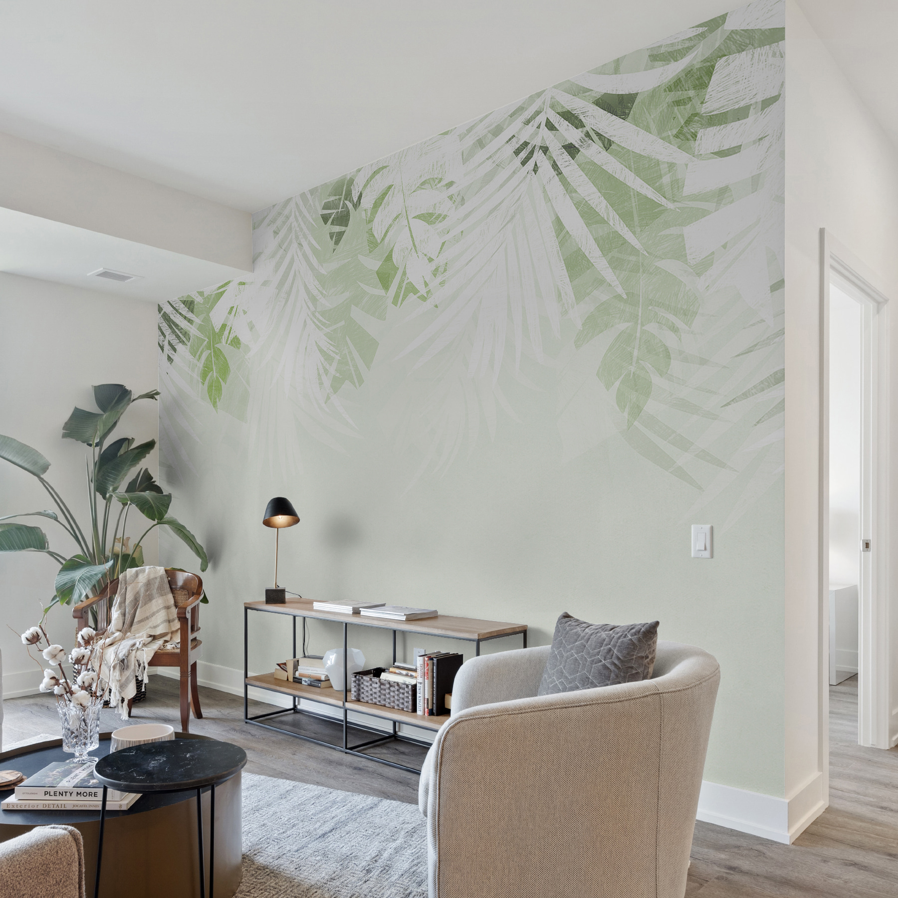 Képzelje el, hogy reggel erre ébred – szinte olyan, mintha egy nyugodt dzsungelbe lépett volna, de a páratartalom (vagy a bogarak) nélkül. Ideális minden természetbarát otthoni irodájába, hálószobájába vagy akár egy hangulatos olvasósarokba. Kicsit olyan, mintha a szabadba hoznád be a természetet, de kevesebb kosszal és több stílussal. Ráadásul, ha a falaidra ráférne egy kis szeretet, ez a falfestmény pont megfelelő ahhoz, hogy elrejtse a tökéletlenségeket, és minden könnyedén elegánsnak tűnjön.