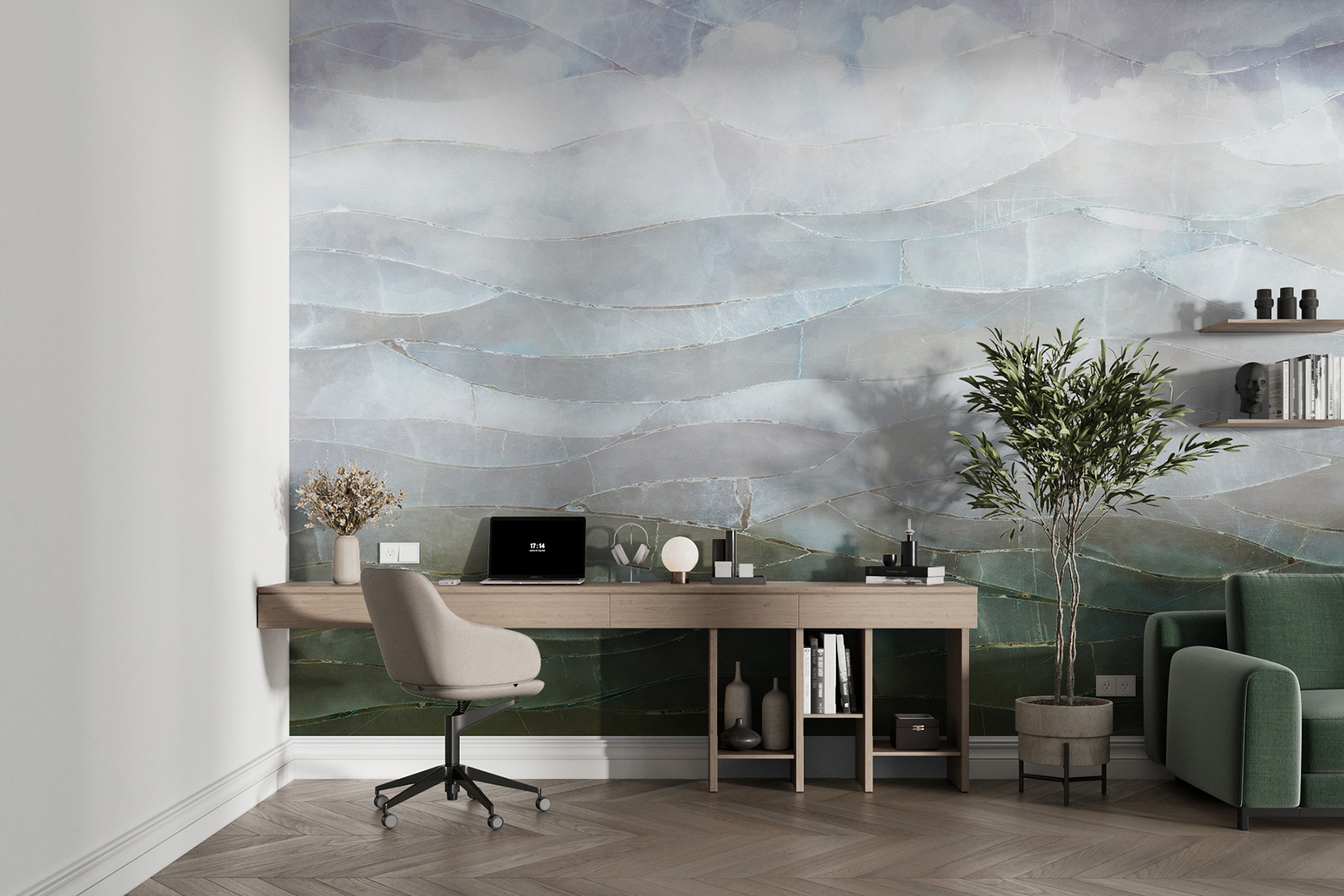 Képzelje el: egy hosszú nap után hazaér, ledobja magát a kanapéra, és felnéz a falára – azonnal egy olyan helyre kerül, ahol az ég és a tenger találkozik, a színek és textúrák zökkenőmentes keveredésével. A hullámos mintáknak ez a fantasztikus 3D hatásuk van, amitől a fal szinte élőnek tűnik. Elég menő, nem igaz? Tökéletes választás nappaliba, hálószobába vagy akár kreatív munkaterületre.