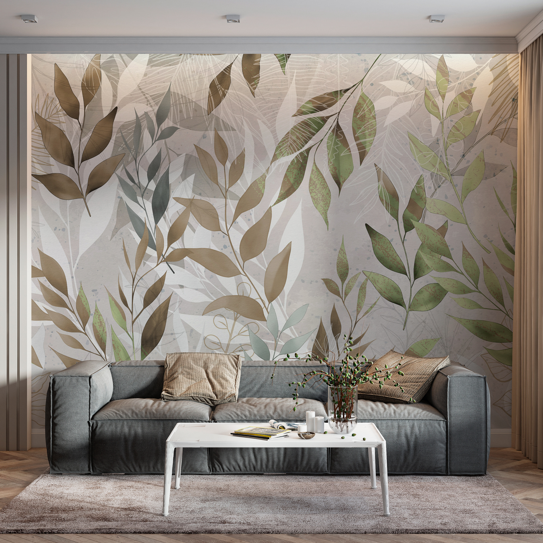Képzelje el, hogy belép egy szobába, és azonnal egy lágy, lombos ölelés veszi körül. Ez a “Lombos ágak finom mintázatban” fali falfestmény pontosan ezt teszi – a teret egy nyugodt, természet által áthatott menedékké alakítja át. Van ez a sikkes, finom 3D-s hatás, amelytől az ágak szinte kiugranak a falból, mintha egy nyugodt erdőben lennél, de stílusos hangulatban. Tökéletes minden olyan helyiségbe, amelynek szüksége van egy kis eleganciára és melegségre.
