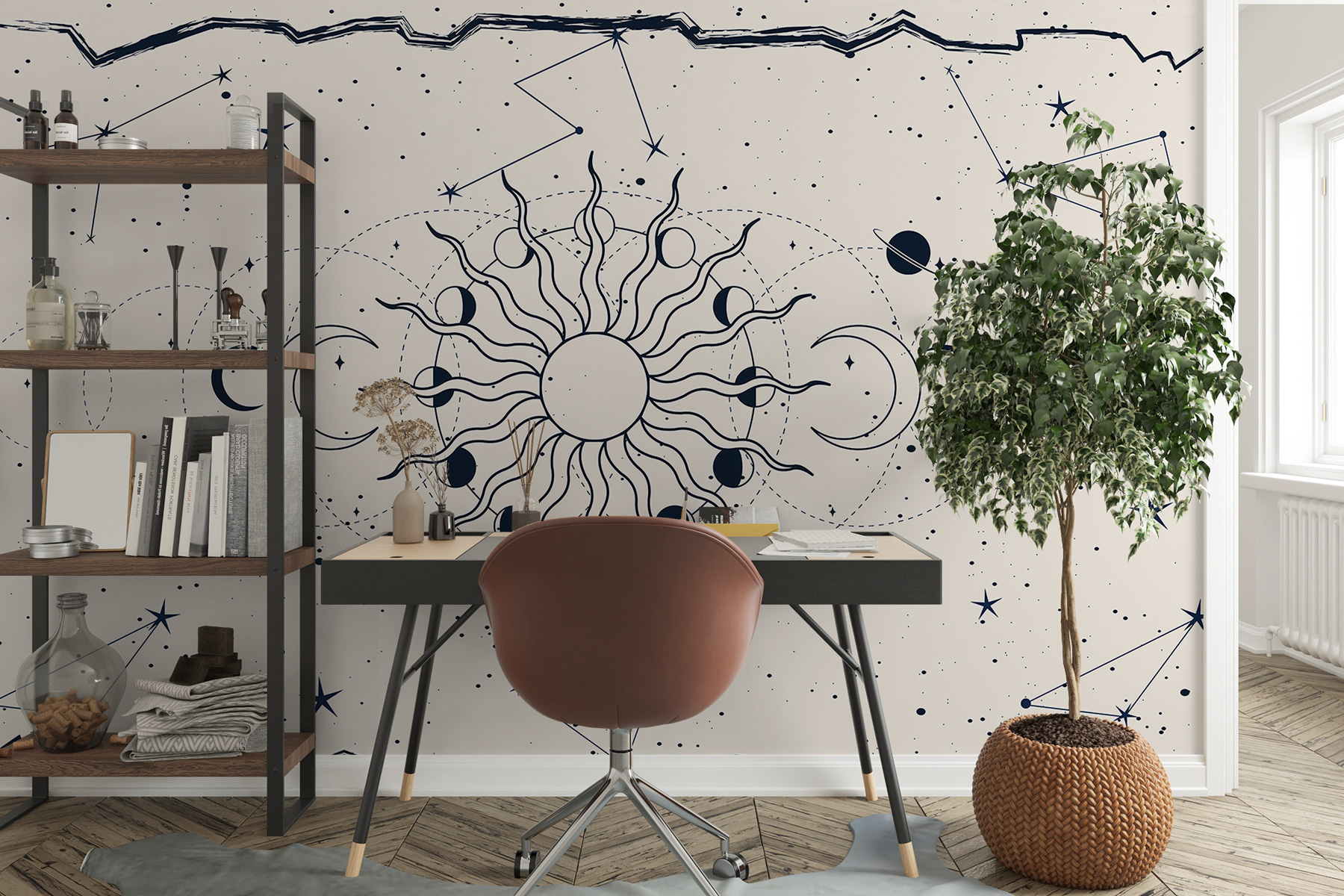 Alakítsa át terét a varázslatos “A Nap és a Hold fali falfestmények rajzával”. Ez a varázslatos dizájn játékos táncban hozza össze az égi duót. Képzelje el, ahogy besétál egy olyan szobába, ahol a nap melegséget sugároz, a hold pedig nyugtató fényt áraszt. Tökéletes egy hangulatos hálószobába vagy egy vibráló nappaliba, beszélgetésekre sarkall és álmodozásra ösztönöz.