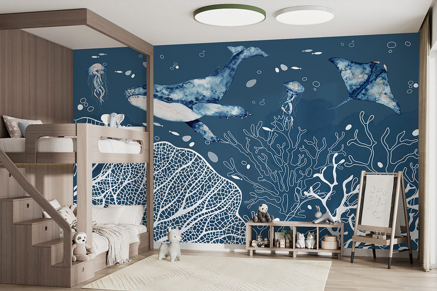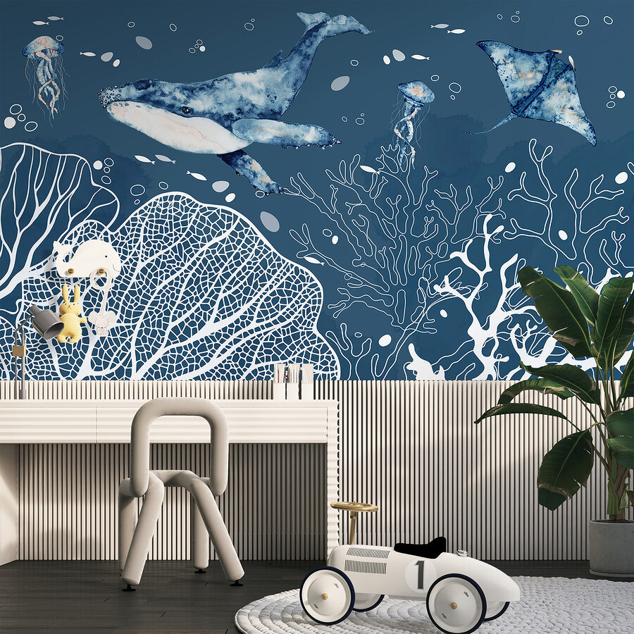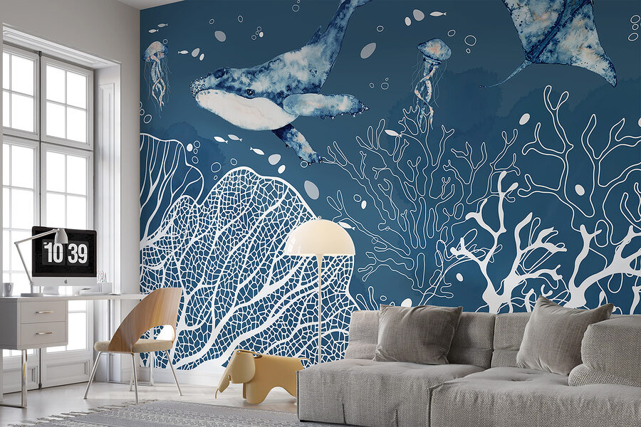 Merüljön el az óceán nyugodt, igéző mélységeibe a “Underwater Wonders of the Deep Sea” falfestmény segítségével. A bálnák, kecses ráják és kíváncsi medúzák varázslatos jelenetével ez a falfestmény bármilyen teret békés tengeri paradicsommá varázsol. Képzelje el, ahogy a nyugtató kék árnyalatok és a bonyolult vízi részletek feldobják a szobáját! Tökéletes egy kis szökés a falra – szinte olyan, mintha vizesedés nélkül búvárkodnál. Nagyszerű választás az óceán szerelmeseinek, vagy bárkinek, aki egy szelet nyugalmat szeretne otthonában. Higgye el, ez a falfestmény teljes beszélgetésindító és álomszép kiegészítője bármelyik szobának!