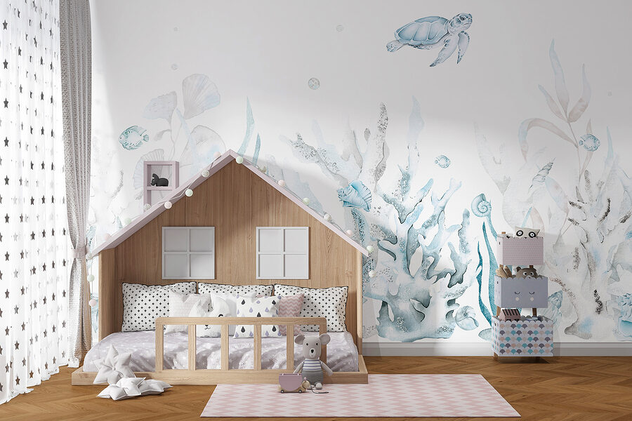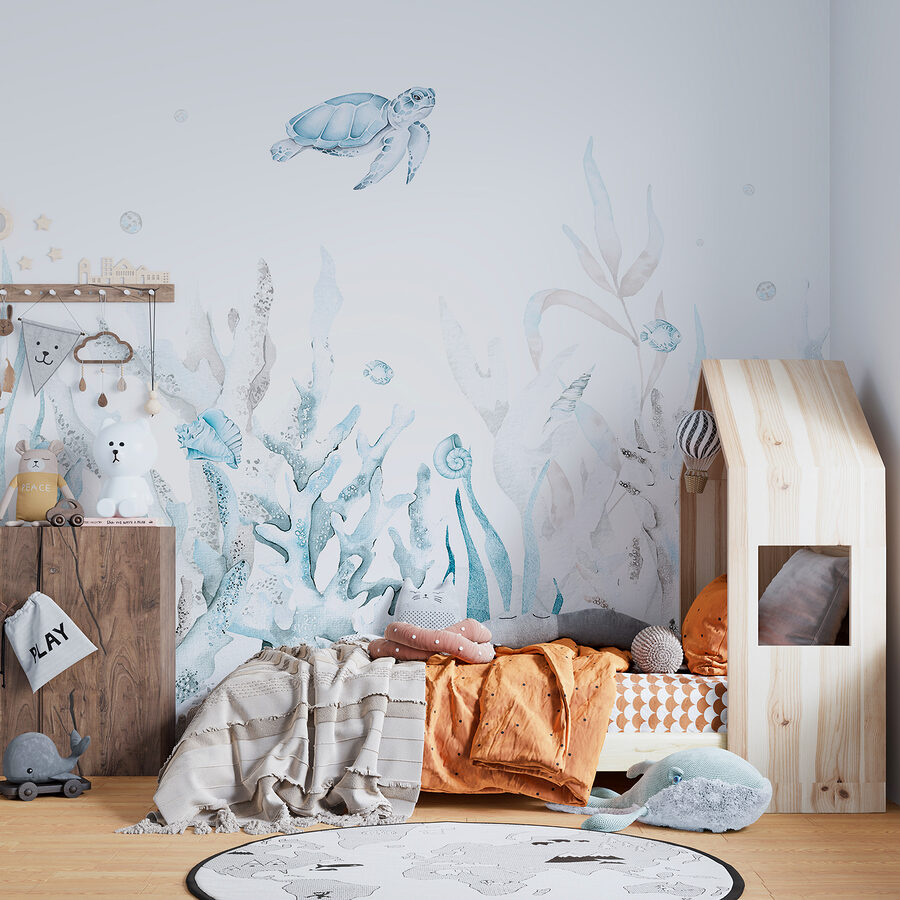 Képzelje el, hogy a nappalijában hűsölve érzi az óceán nyugodt hangulatát ezzel a lenyűgöző “Nyugodt víz alatti jelenet teknőssel” fali falfestménnyel. Tökéletes mindenkinek, aki szereti az óceáni életet, ez a darab finom akvarellszíneket és imádnivaló tengeri élőlényeket ötvöz, így egy megnyugtató víz alatti menedéket hozva létre közvetlenül a falon. Olyan, mintha azonnal ablakot nyitna egy álomszép tengerfenékre – úszó tengeri növényekkel és egy szelíd teknőssel kiegészítve. Őszintén szólva, bármelyik szobát nyugodt tengerparti menedékhelynek érezné. Akár halrajongó vagy, akár csak valaki, aki a helyiséget szeretné feldobni, ez a freskó egy igazi fogás. Csak ne hibáztass minket, ha elkezdesz a tengerparti nyári vakációról álmodozni!