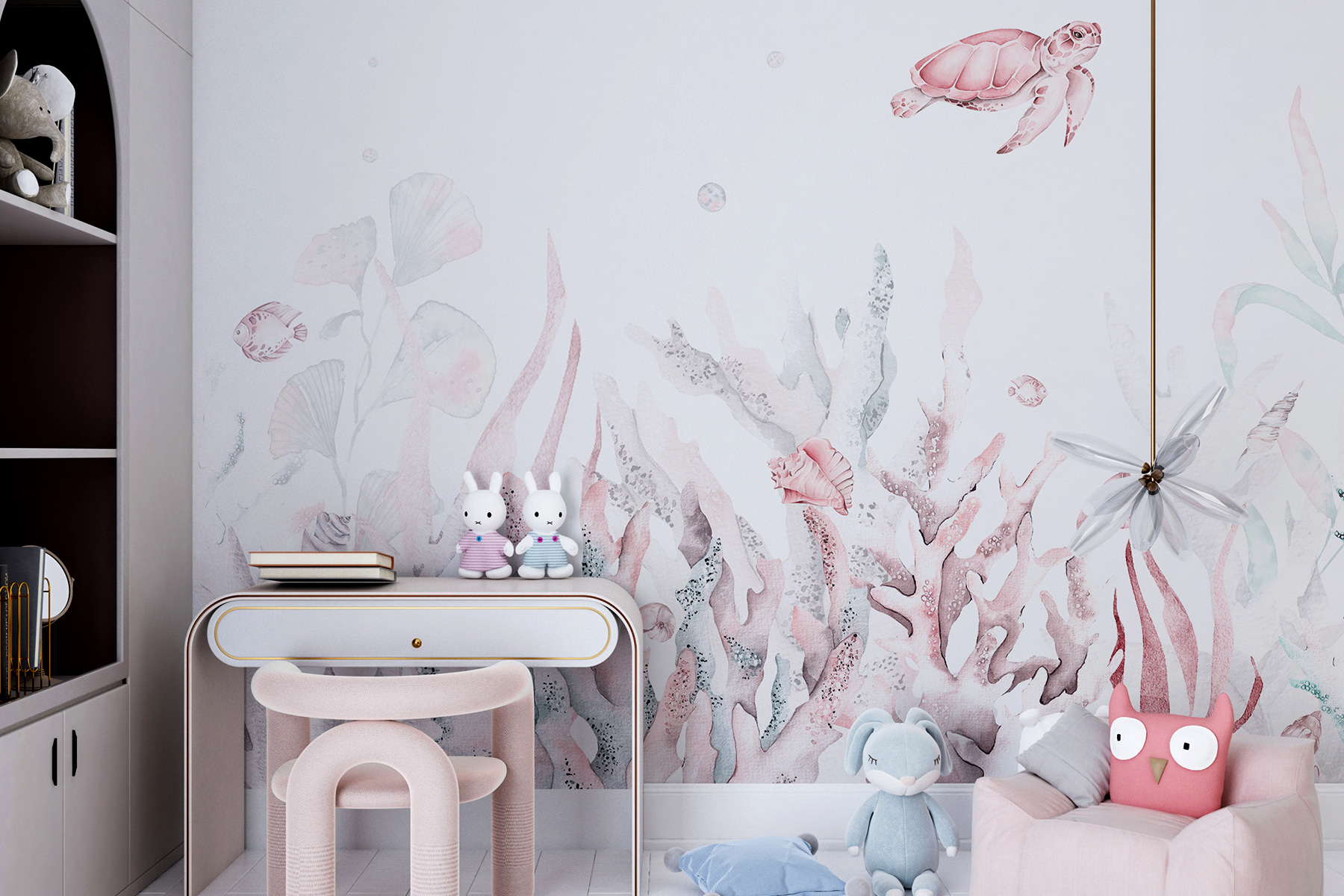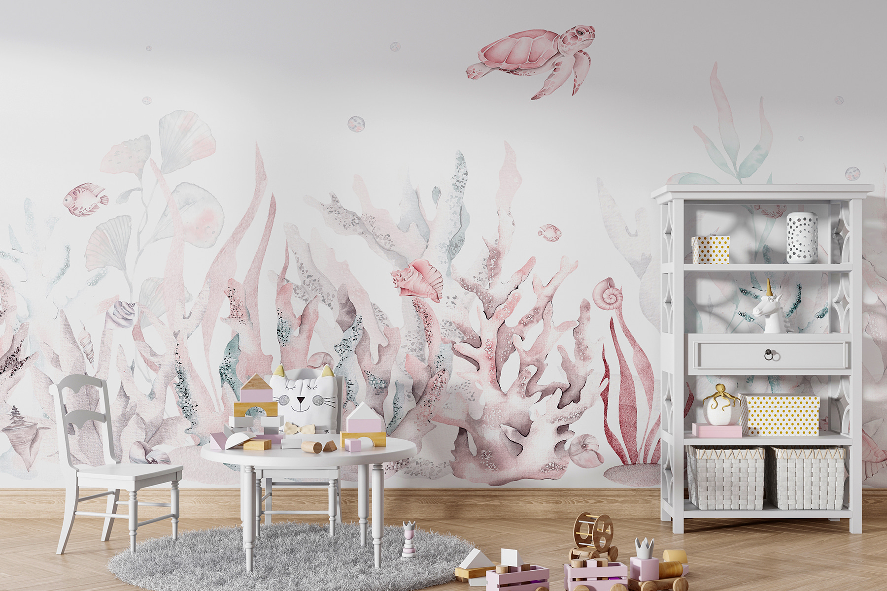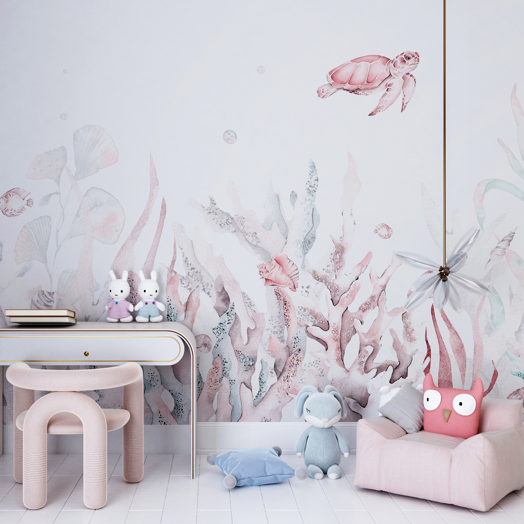 Képzelje el ezt: egy pasztellszínű csodavilág a falán. A “Rózsaszín tengeri teknős rózsaszín páncéllal” falfestmény egyszerűen imádnivaló, és bármilyen teret nyugodt tenger alatti szentéllyé varázsol. Finom akvarell hangulatával – gondolj a gyengéd rózsaszínre és lágy kékekre – egy kis szeszélyt kölcsönöz anélkül, hogy túlterhelné a szobát. Képzelj el egy rózsaszín tengeri teknőst, amint kecsesen elúszik melletted, miközben a reggeli kávét kortyolgatod. Tökéletes a gyermeki képzelet beindítására, vagy a tengerpart megnyugtató csobbanásának bevitelére egy hangulatos olvasósarokba. Ráadásul szinte olyan, mintha egy nyugodt, álmodozó mélységbe merülnél minden alkalommal, amikor belépsz a szobába. Akár a tengerpart szerelmese vagy, akár csak egy békés menekülésre vágysz (homok nélkül), ez a falfestmény a te segítségedre lesz. Merülj el és élvezd a kilátást!