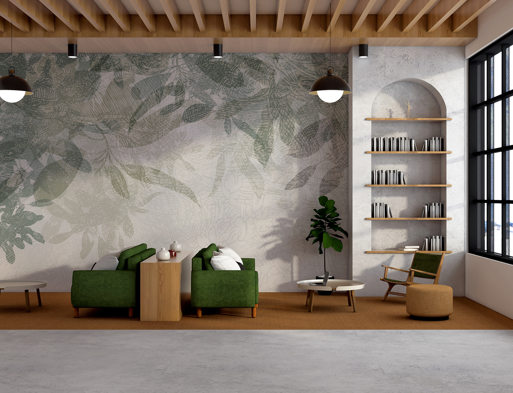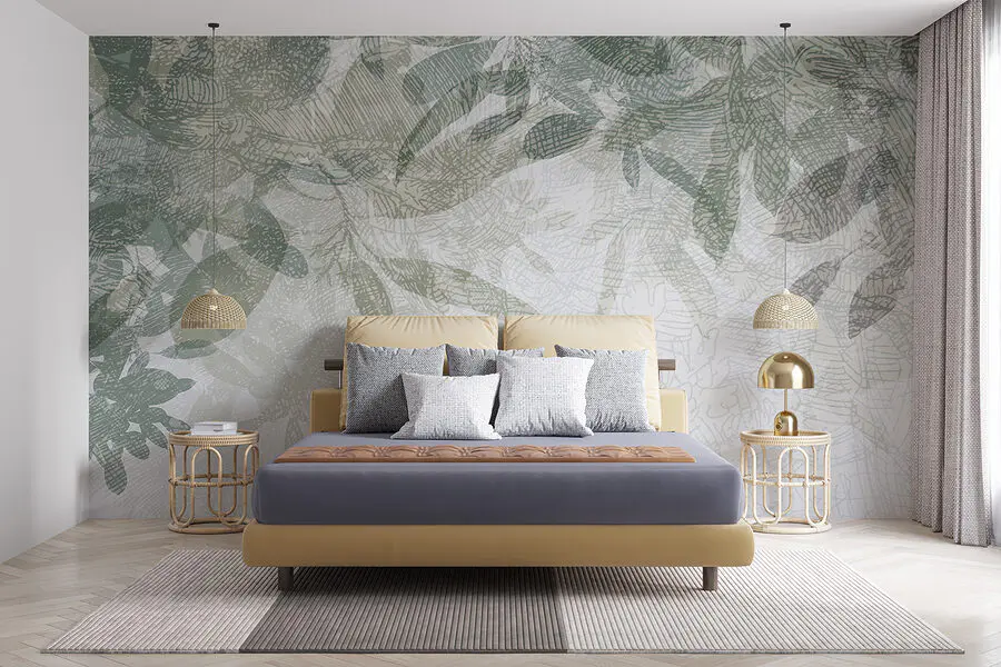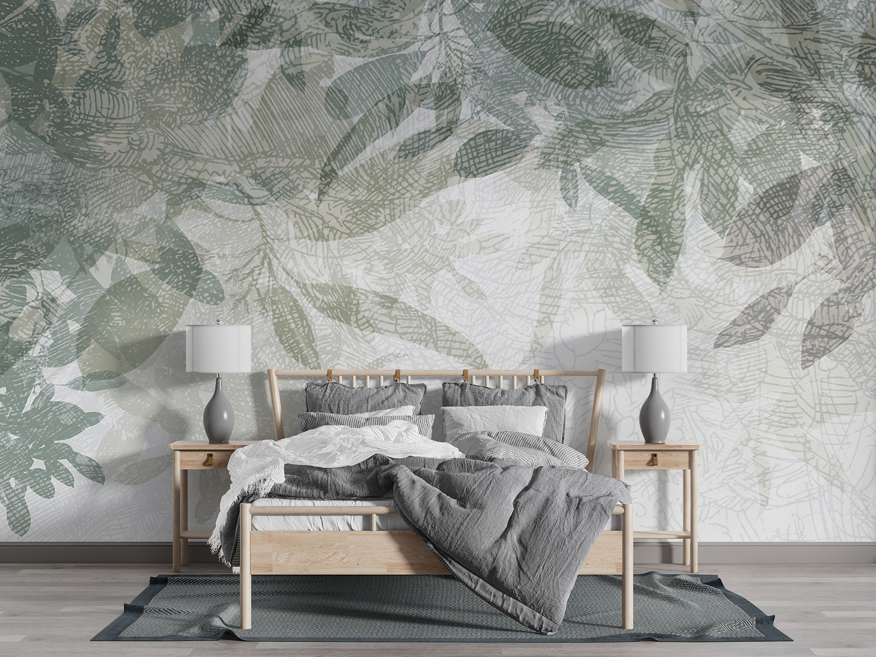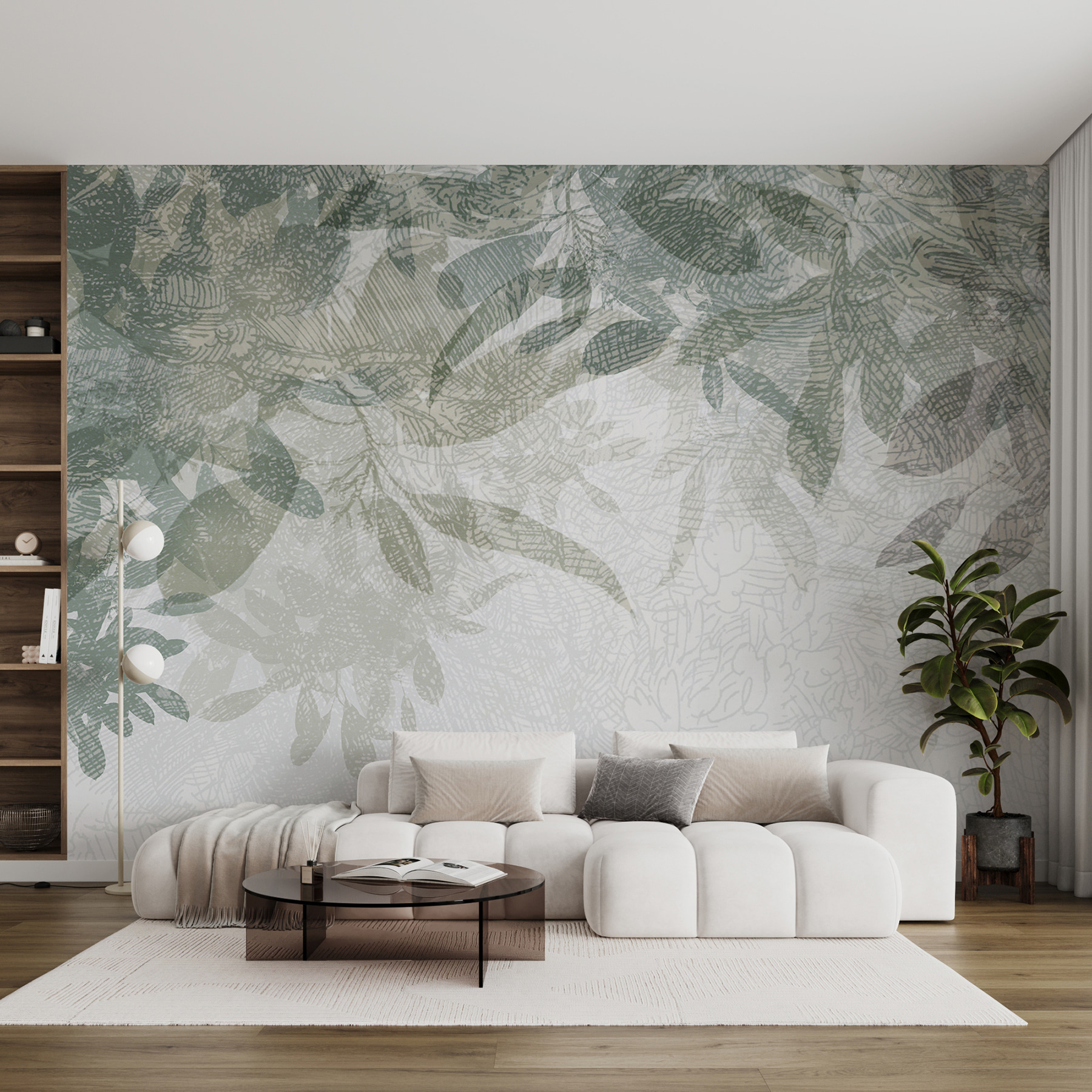 Képzeld el: belépsz a nappalidba, és lágy, árnyékos levelek fogadnak, amelyek békés hangulatot árasztanak. Majdnem olyan, mintha a természet közvetlenül a házban lenne – a bogarak nélkül. Akár reggeli kávét kortyolgatsz, akár esti könyvet olvasol, ez a falfestmény hozza ezt a nyugtató hatást. Finom, mégis kiemelkedik és mélységet kölcsönöz bármely térnek.