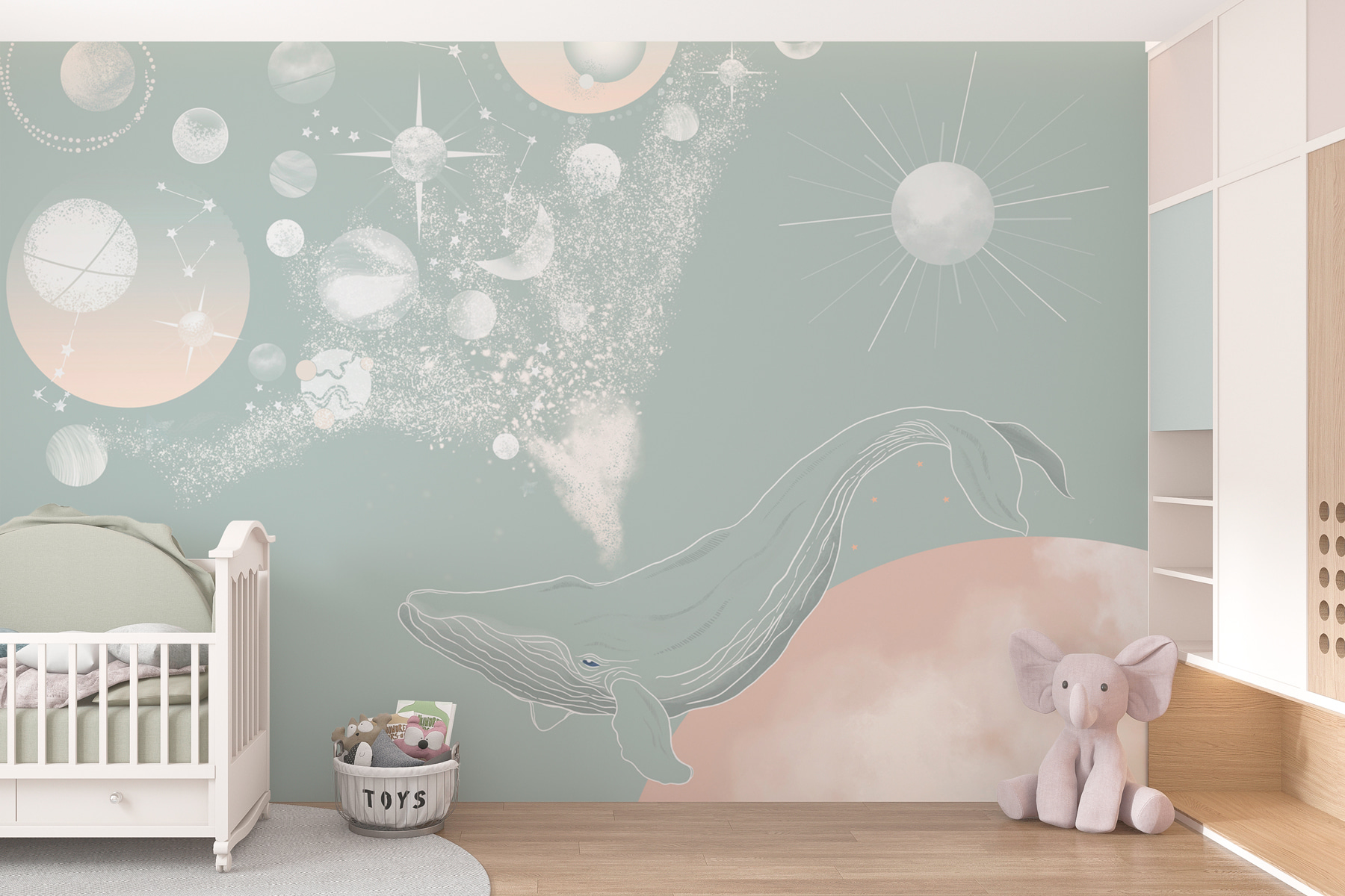 Képzeld el ezt: A “Fehér kör fekete foltokkal” nevű szeszélyes falfestmény az olyan kategóriák része, mint az állati falfestmények és a gyermek falfestmények. Képzelje el, hogy gyermeke szobája varázslatos térré változik ezzel a játékos dizájnnal. Olyan, mintha egy tengerparti napot kombinálna a csillagok alatti éjszakával. Az álomszerű körök és bolygók között lebegő szelíd bálnákkal kíváncsiságot ébreszt és varázslatos hangulatot kölcsönöz. Nagyszerű gyerekszobákba, játszószobákba vagy akár egy funky nappali sarokba. Ez nem csak dekoráció; ez egy élmény, amely nyugodt, mégis élénk hangulatot nyújt. Tökéletes álmodozóknak és kis felfedezőknek!