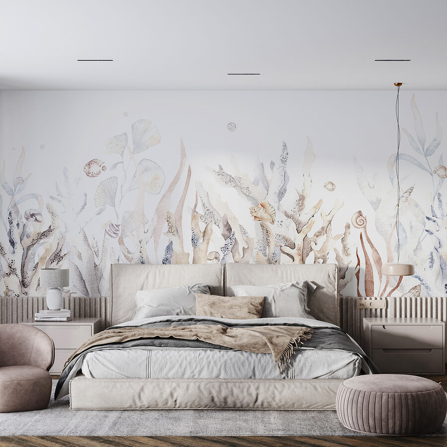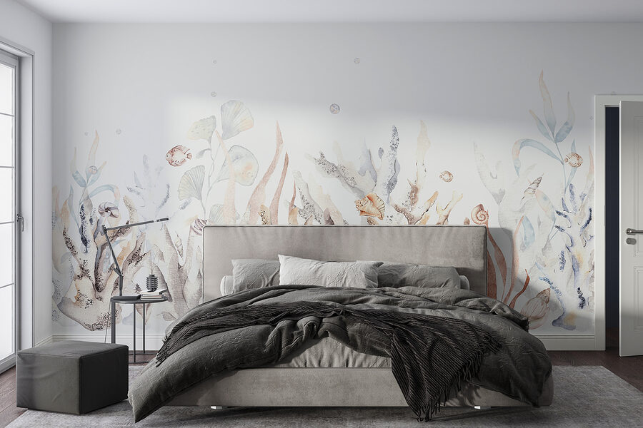Képzelje el, hogy szobájába lépve úgy érzi, mintha egy varázslatos víz alatti paradicsomba lépett volna be. A “Víz alatti kert kagylókkal és halakkal” falfestmény olyan, mintha az óceán egy darabja lenne az otthonodban. A nyugodt színekkel és finom részletekkel olyan nyugtató hangulatot áraszt, amely tökéletes a hosszú nap utáni kikapcsolódáshoz. Szinte érzi a hűvös tengeri szellőt és hallja a lágy hullámokat, nem igaz?