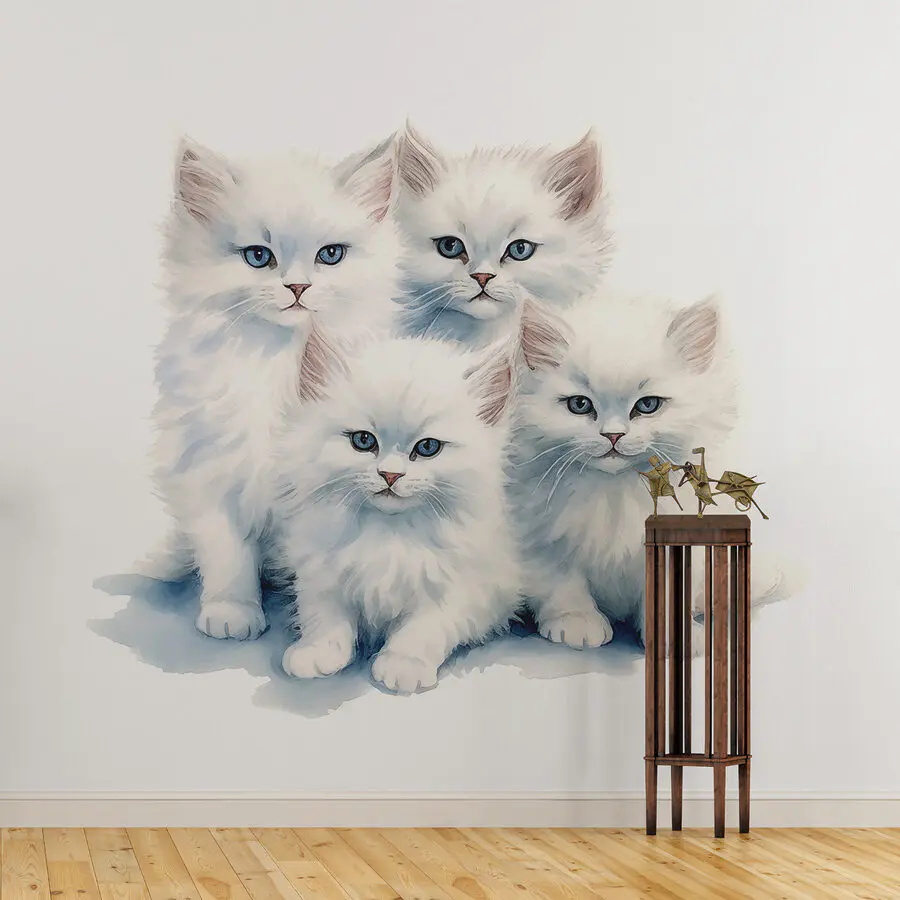 Meg kell nézned ezt a falfestményt, amelyen fehér cicák bolyhos brigádja látható. Komolyan, ez a legaranyosabb dolog a világon! Képzeld el, ahogy ez a négy kis szőrgombóc minden reggel üdvözöl téged – azonnali hangulatjavító, igaz? Ezek a cicák nagyon hangulatos hangulatot árasztanak, tökéletesek minden olyan szobába, amelynek szüksége van egy adag imádnivalóra. Tegye őket a gyerekszobába, a nappaliba vagy akár egy irodába, hogy megtörje az egyhangúságot. Már attól is fülig érő szájjal fogsz vigyorogni, ha csak ránézel ezekre az ártatlan kék szemekre. Ráadásul bárki, aki meglátogatja, biztosan megjegyzést tesz majd a mancsos ízlésedre. Lényegében olyan, mintha egy ölelgetős bulit tartanál a faladon – mínusz a vedlés! Ha szeretnél egy játékos, szívmelengető hangulatot varázsolni otthonodba, ez a falfestmény tökéletes választás.