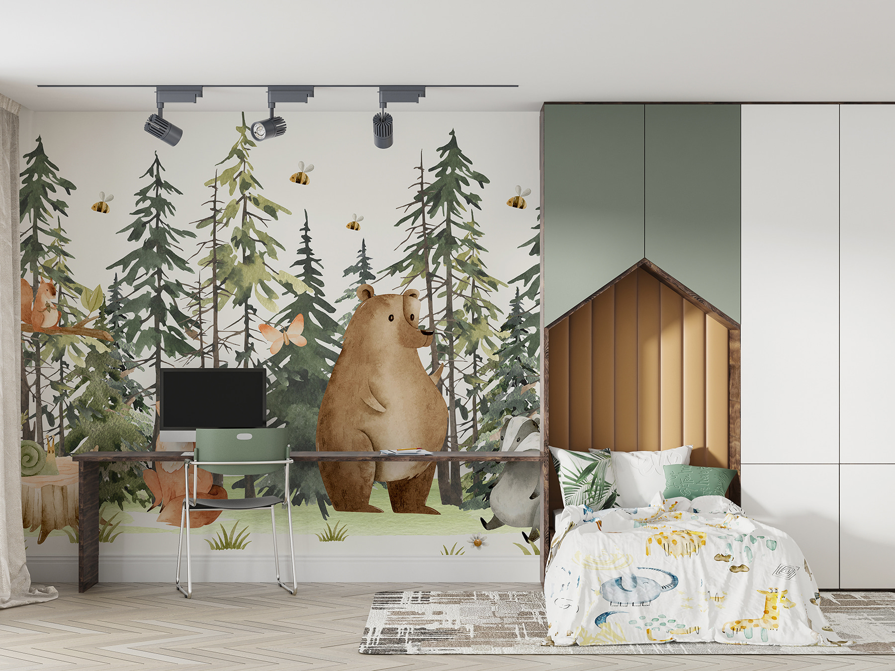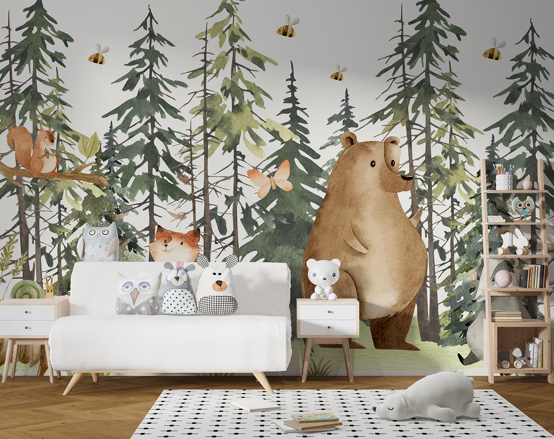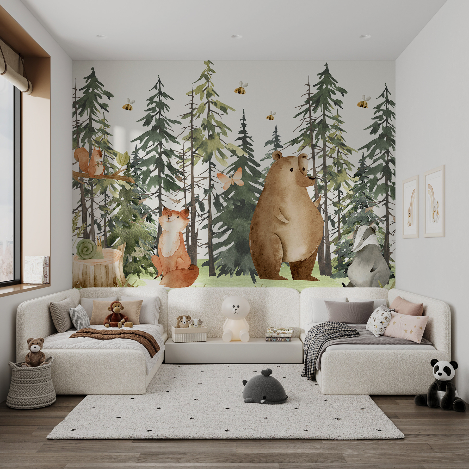 Bármilyen teret varázsolhatsz szeszélyes csodavilággá ezzel a bájos falfestménnyel, amelyen egy bájos csiga pihen egy hangulatos facsonkon. Képzelje el: a meleg napfény átszűrődik a magas fenyőkön, miközben olyan kis állatok, mint a rókák és a medvék, teáznak Önnel – képletesen szólva! A gyengéd színek és az aranyos vadállatok olyan varázslatos hangulatot árasztanak, amely még a legelfoglaltabb elméket is megnyugtatja. Képzeld el, hogy erre az örömteli jelenetre ébredsz, és azonnal a természetbe burkolózva érzed magad. Olyan, mintha az erdő egy szeletét hoznád be az otthonodba, tökéletes a gyerekszobákba vagy bármely olyan helyre, ahol szükség van egy kis varázslatra. Ráadásul talán még néhány kellemes álmodozást is inspirálhat!